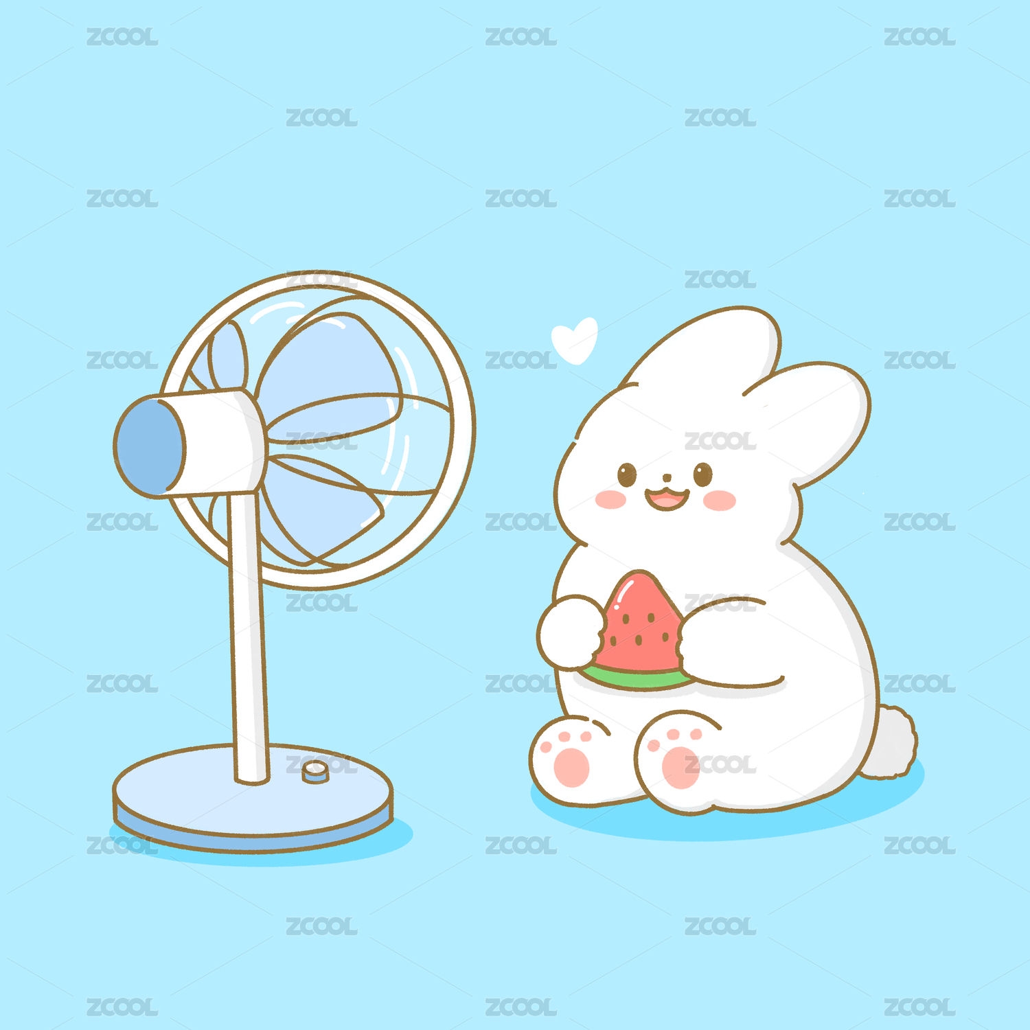 夏天吹电风扇的兔子