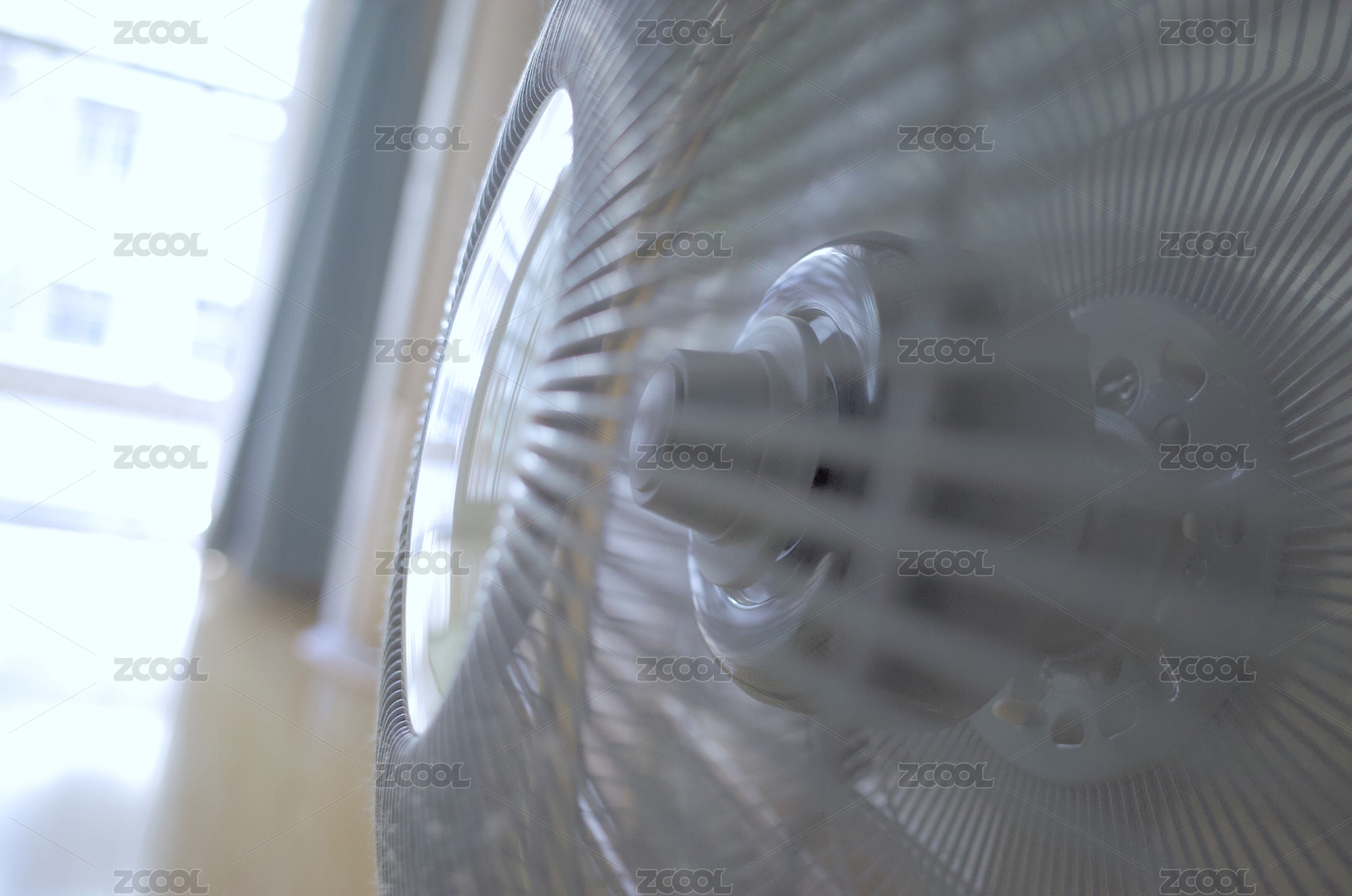 工作中的电风扇和防护罩特写