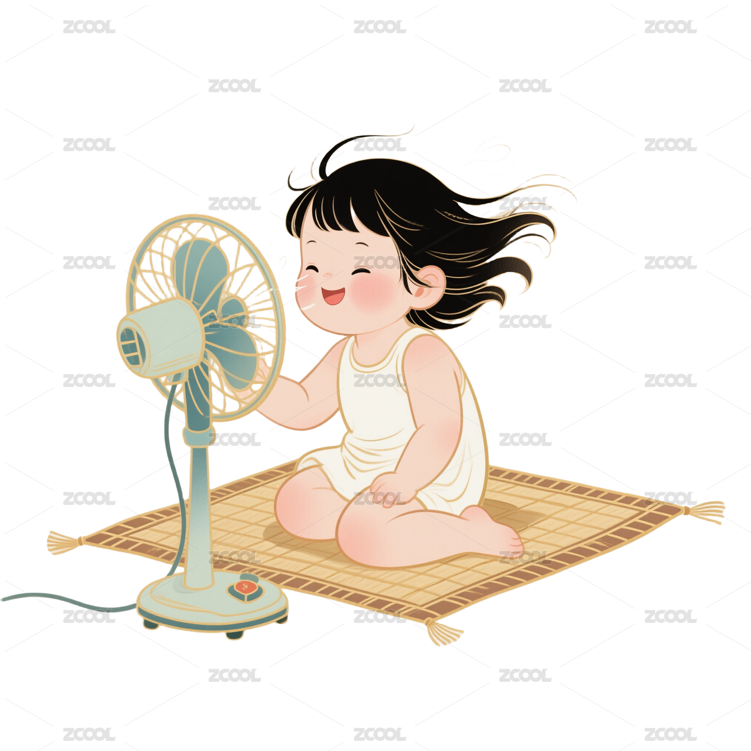 小清新风格电风扇插画元素