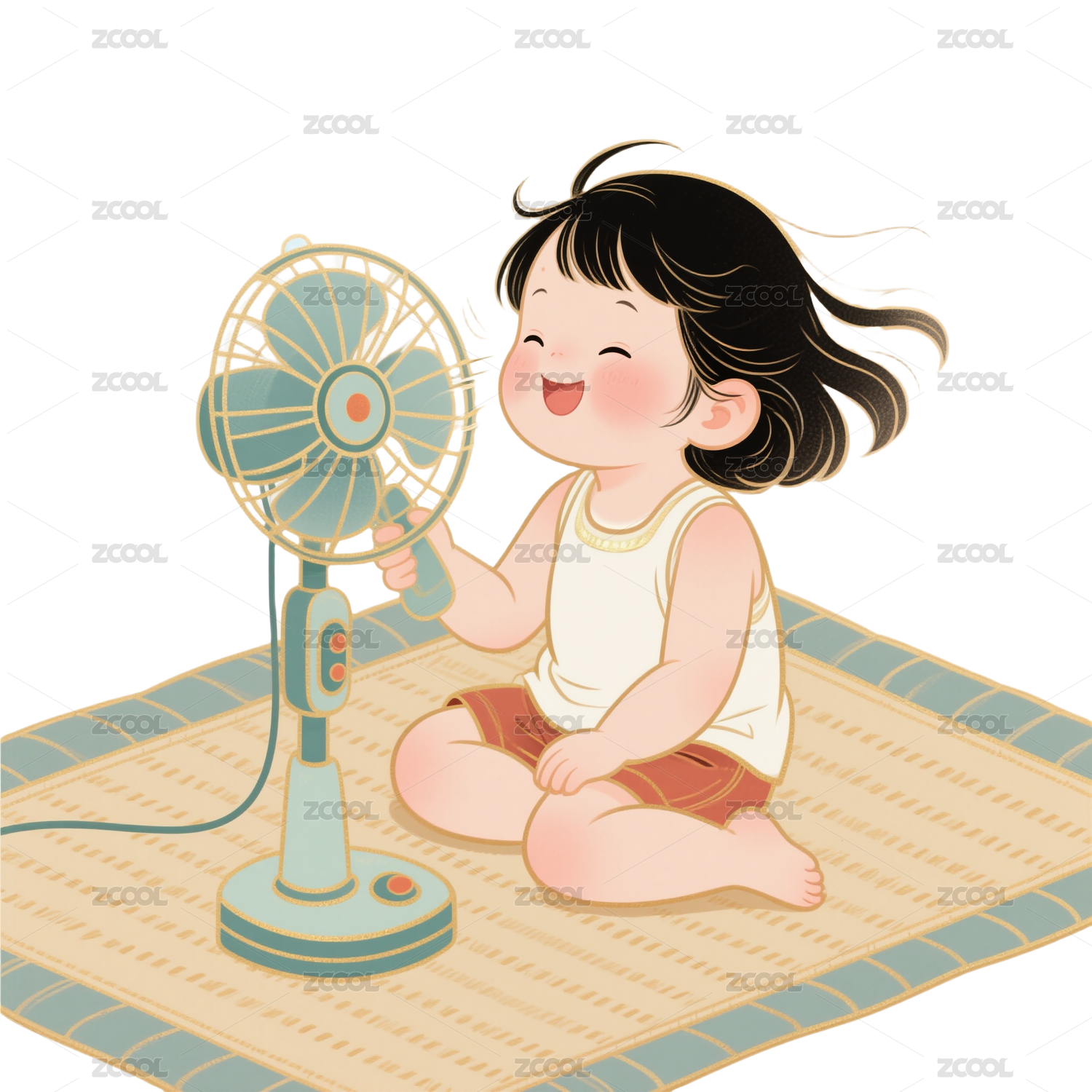 大暑 吹电风扇的女孩