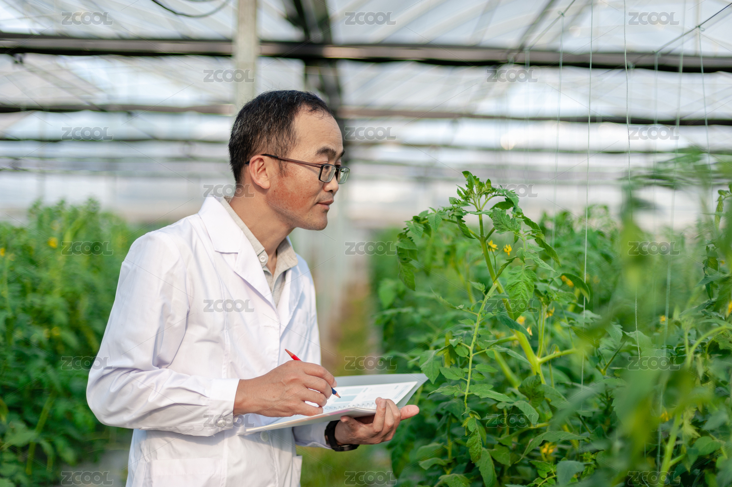一个男性 农业科学研究人员在检查修剪植物