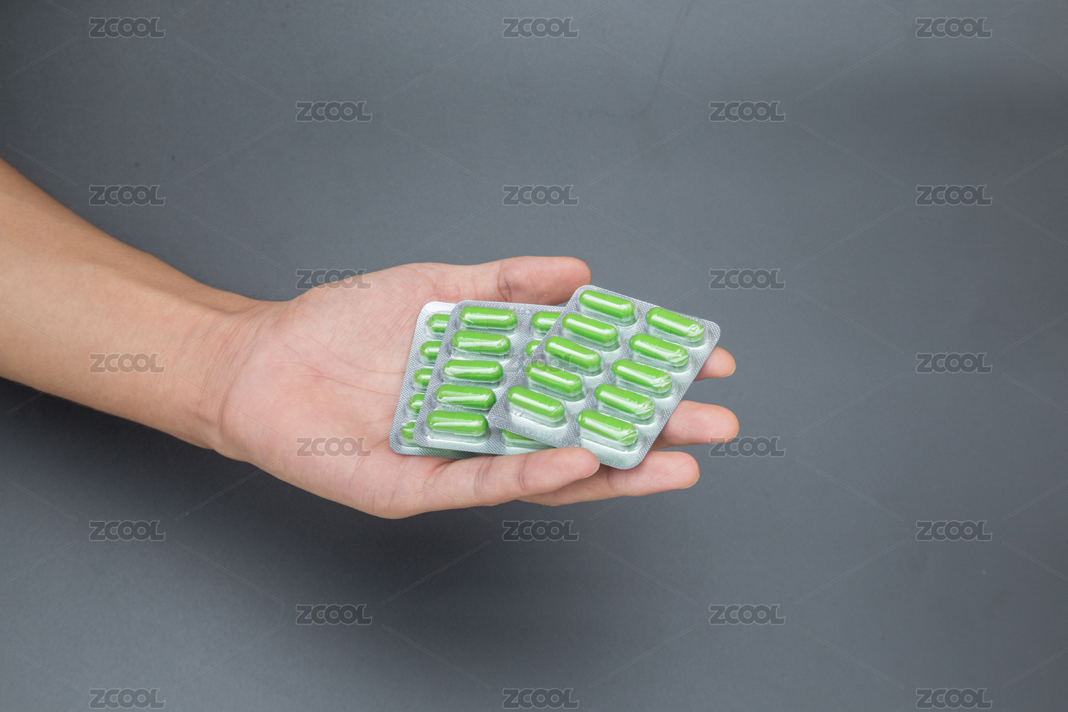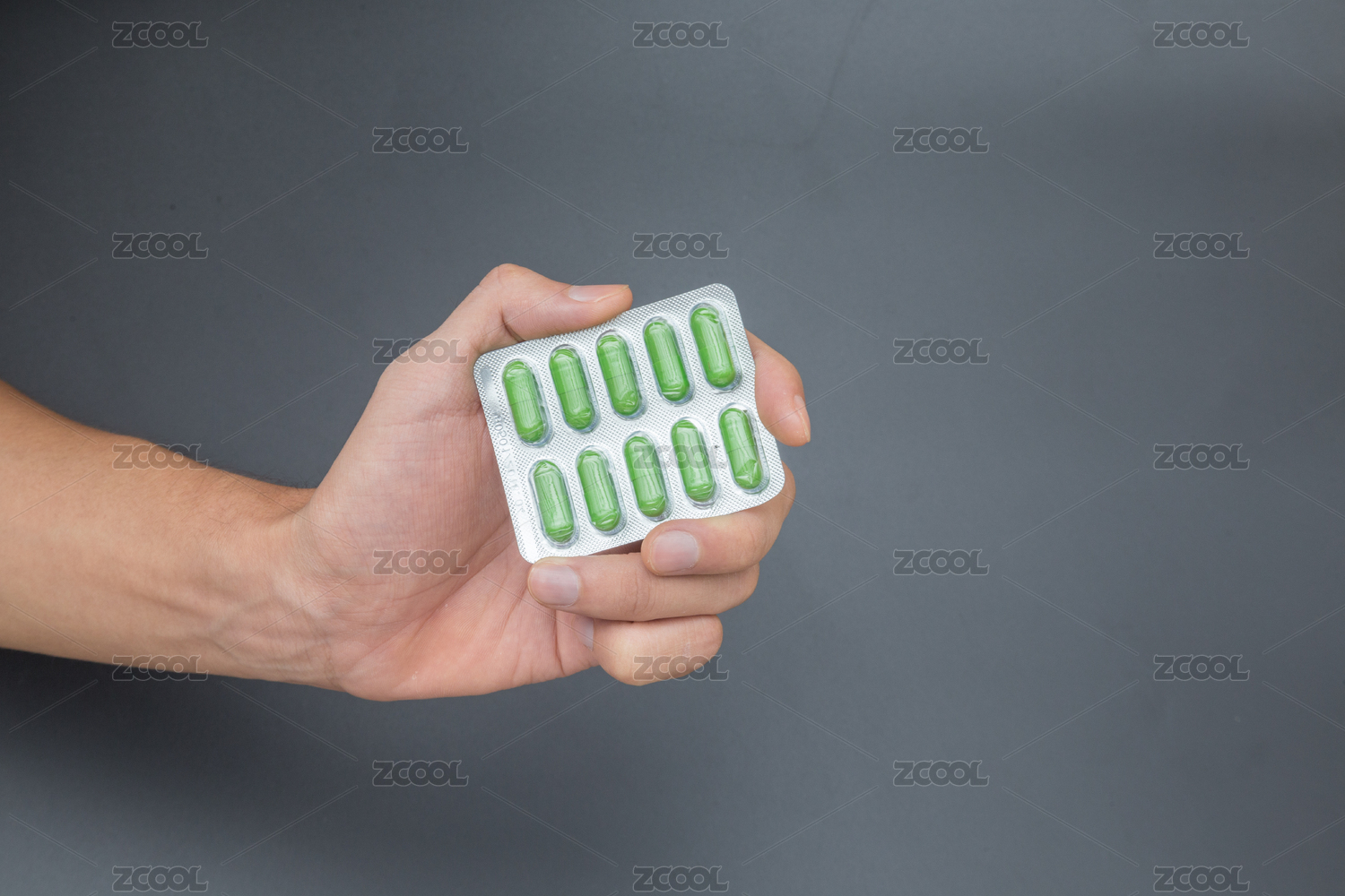 拿着一颗胶囊的手 图案设计 矢量插画
