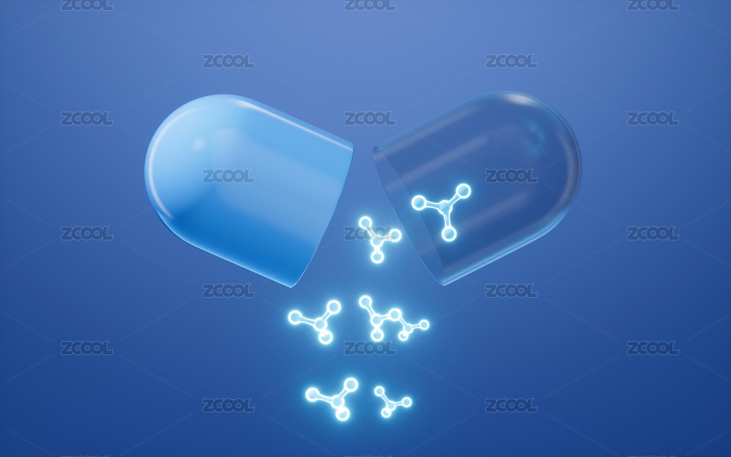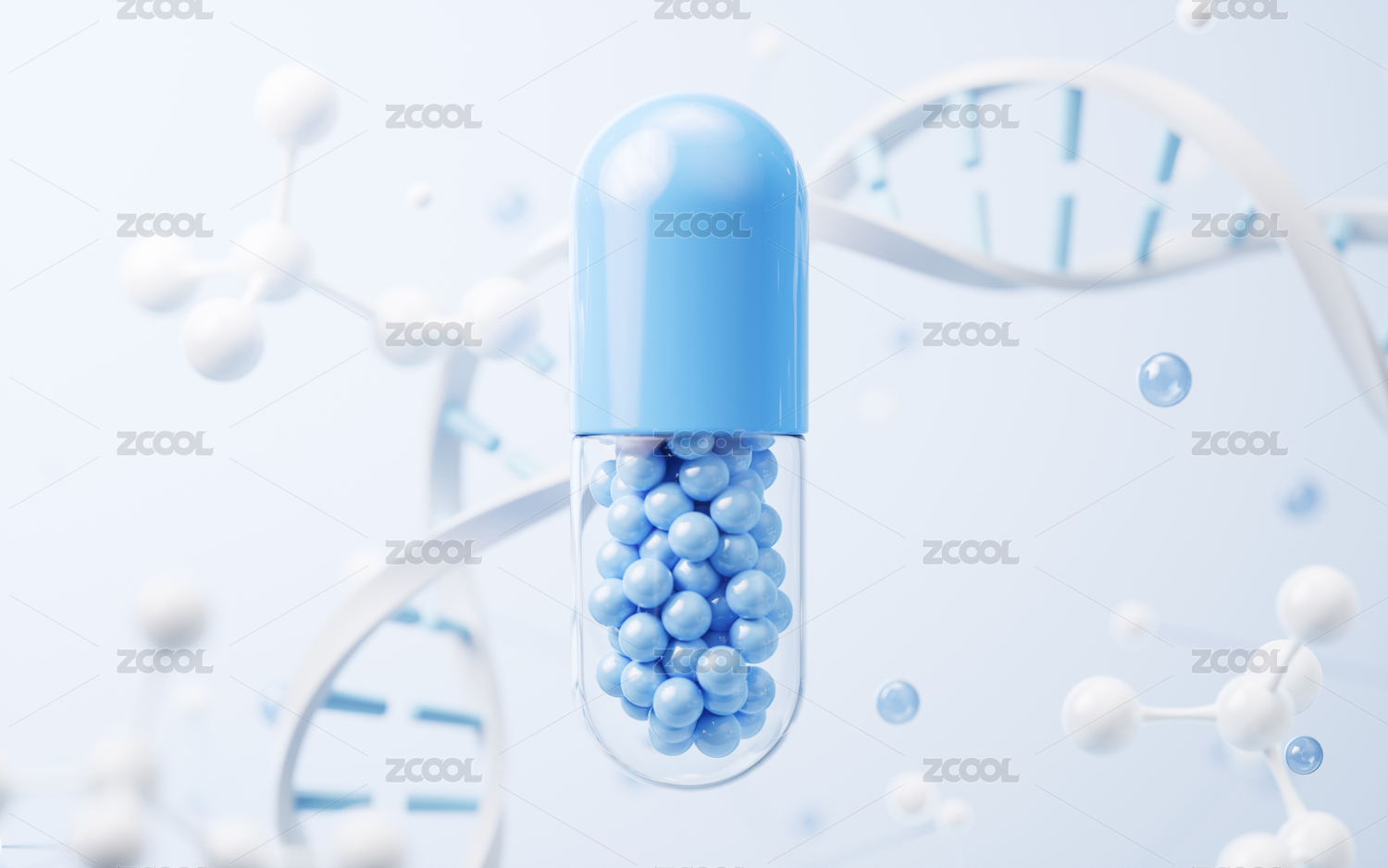 胶囊中的分子结构3D渲染