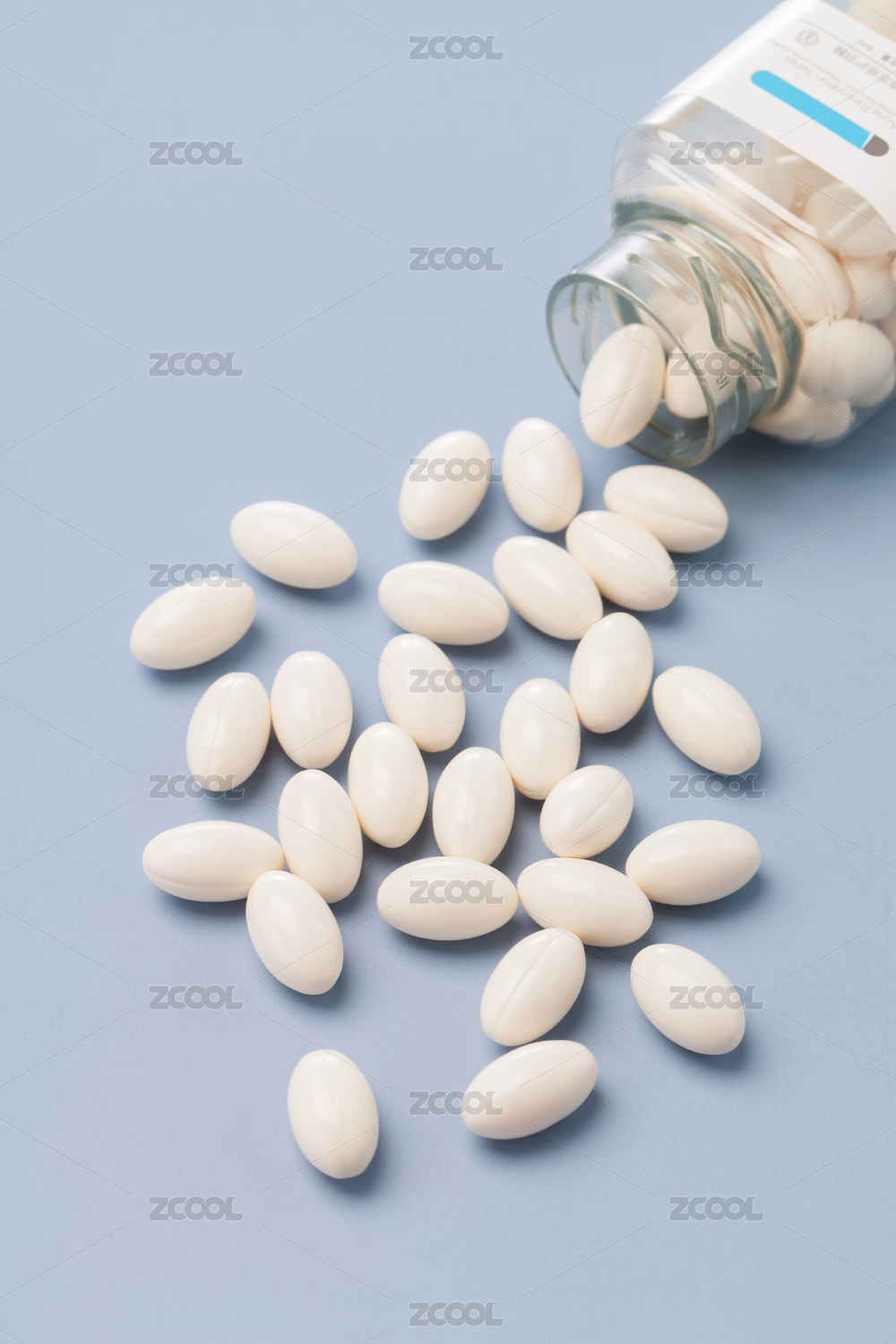 药瓶倒出的白色液体钙胶囊特写