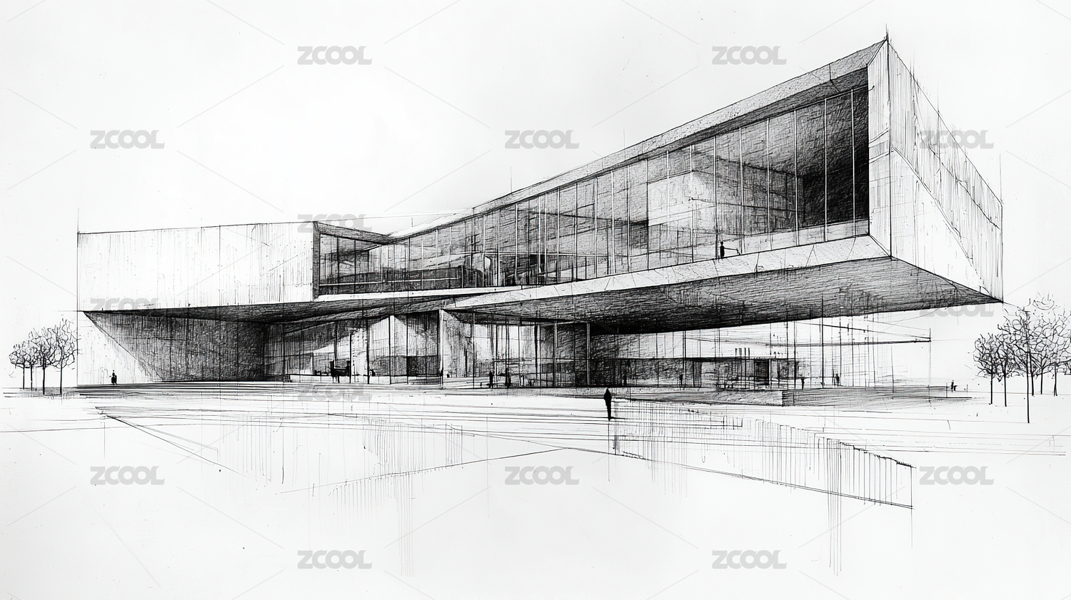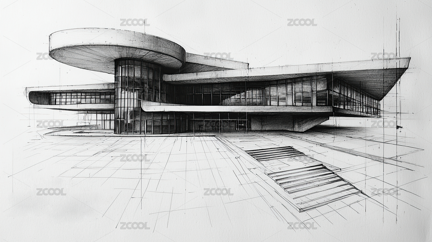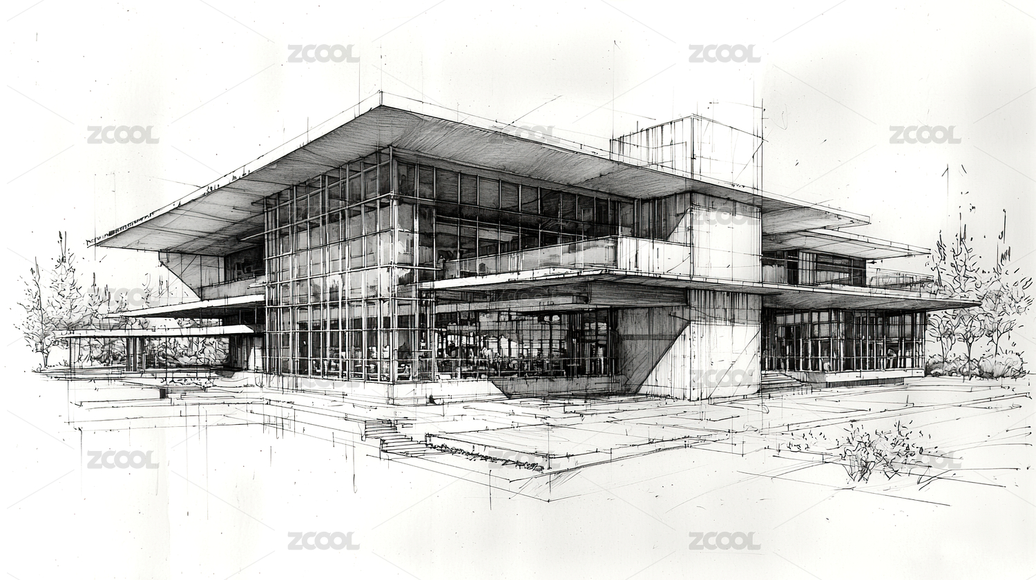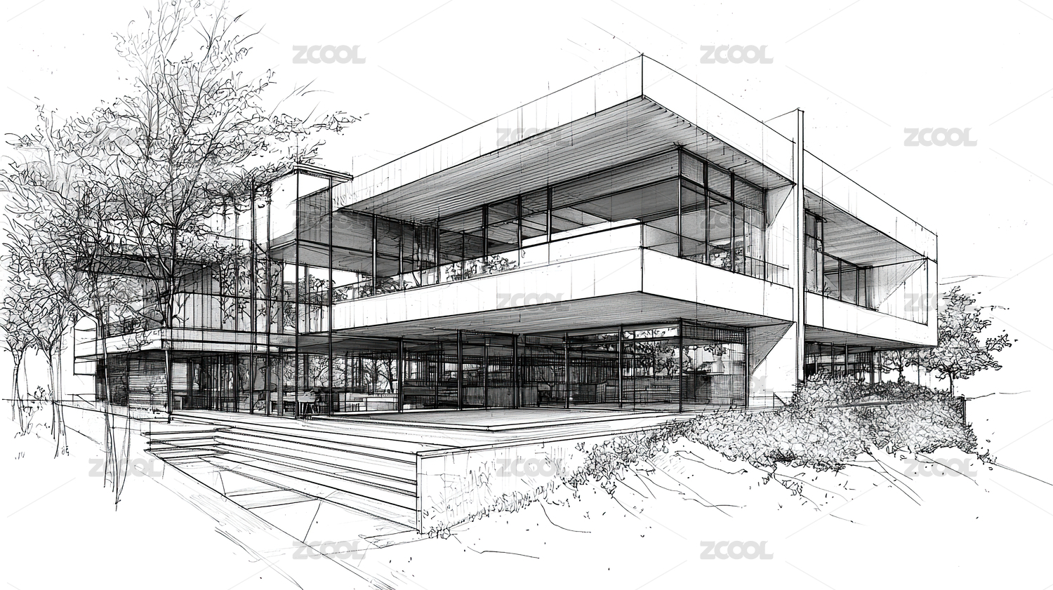 现代建筑别墅房屋设计手绘手稿设计图插画