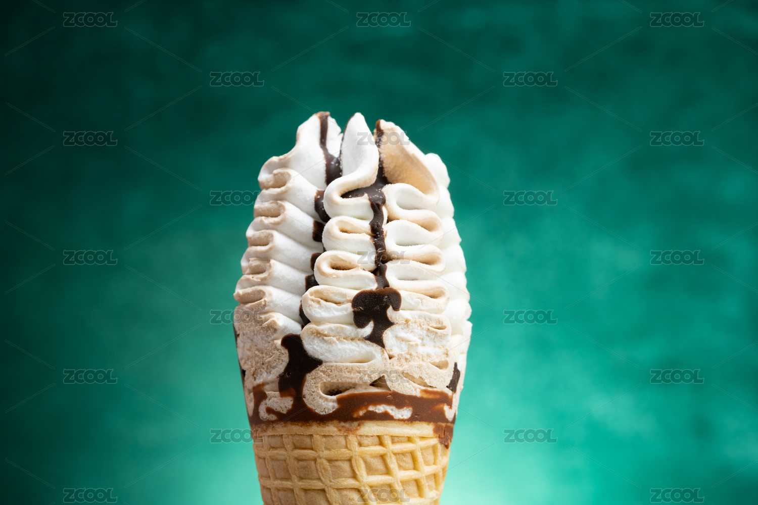 渐变绿背景上新鲜香草巧克力口味甜筒