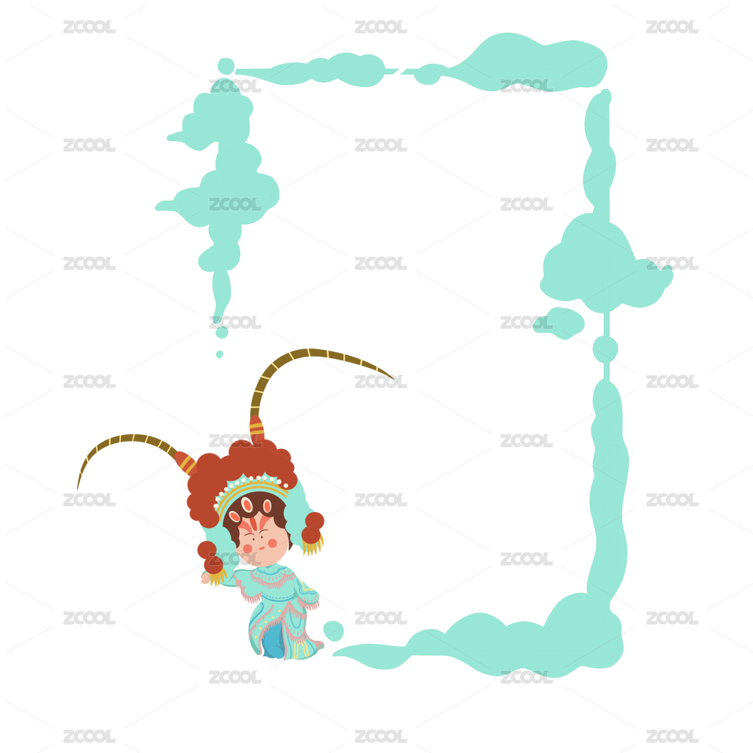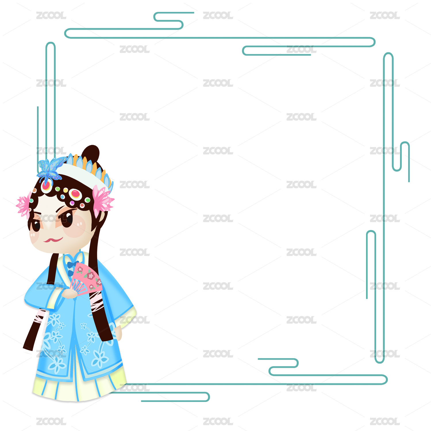 活泼蓝色古风京剧人物边框元素