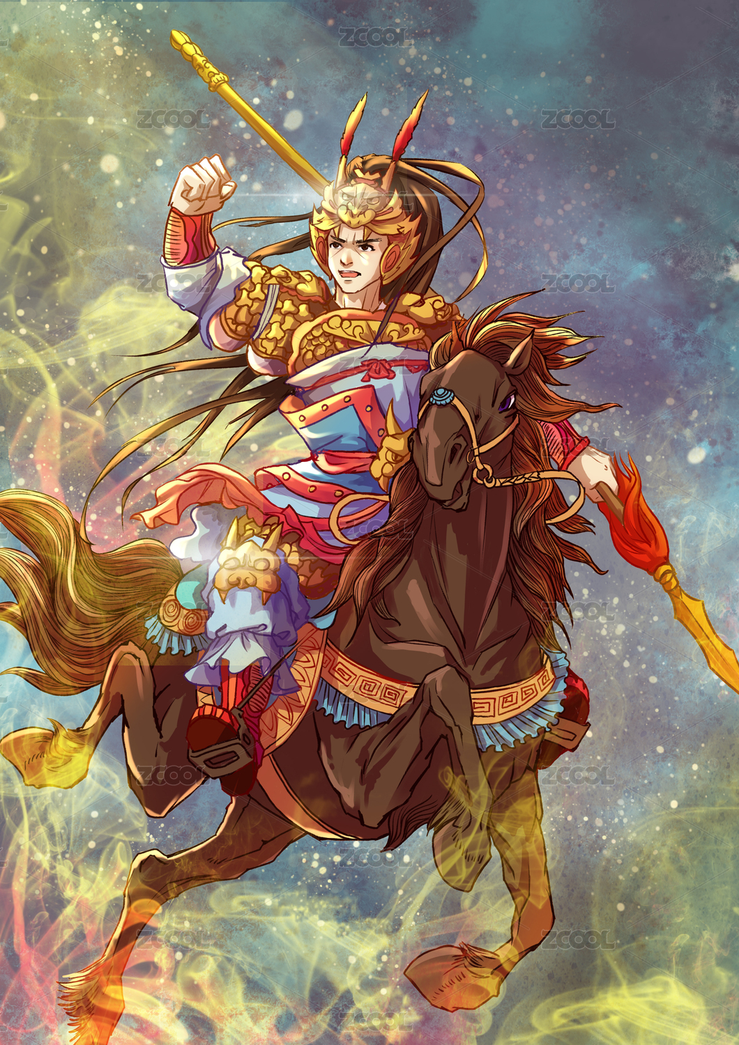 原创国潮古风骑马将军插画