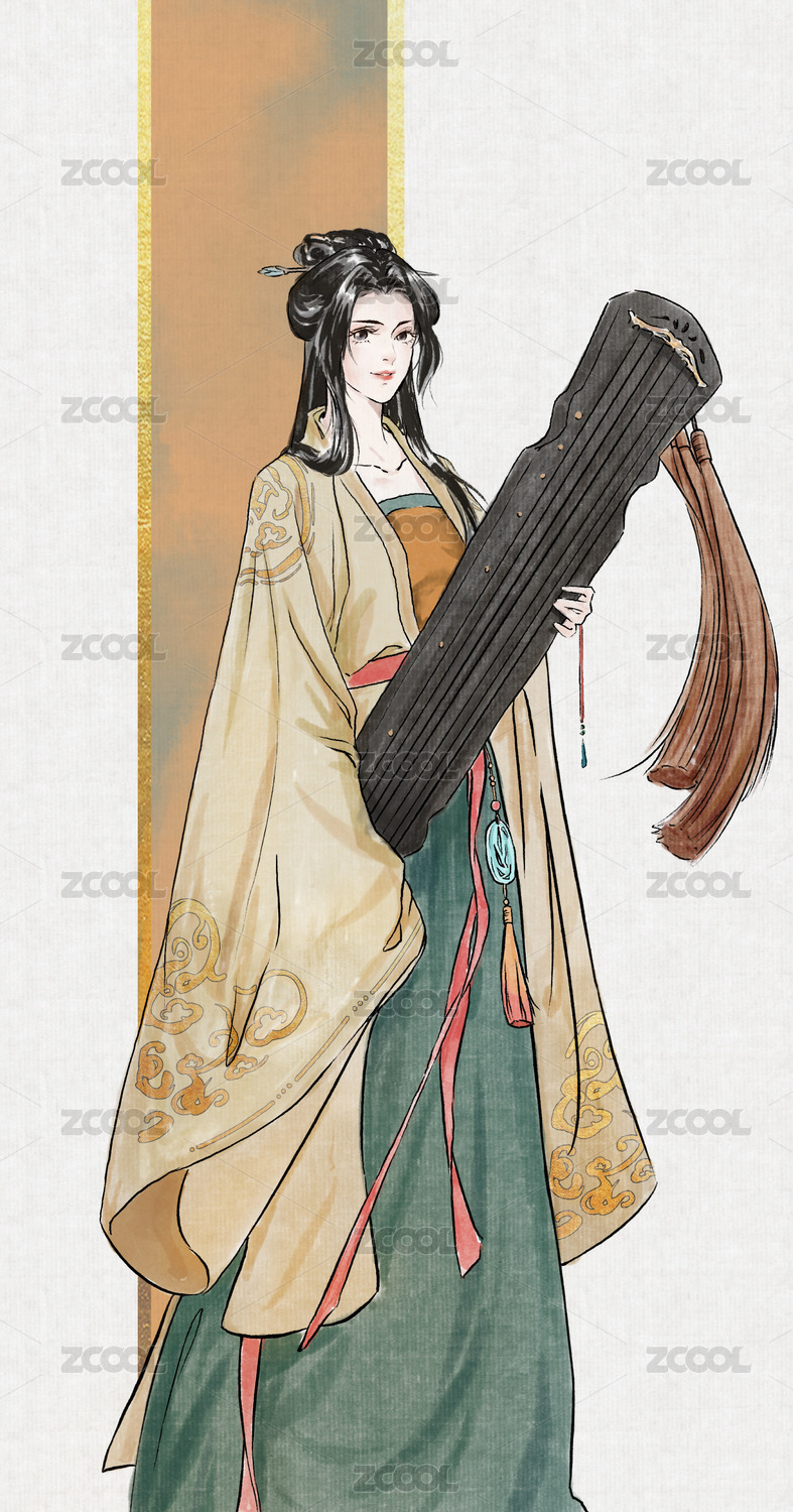 抱古琴的汉服少女