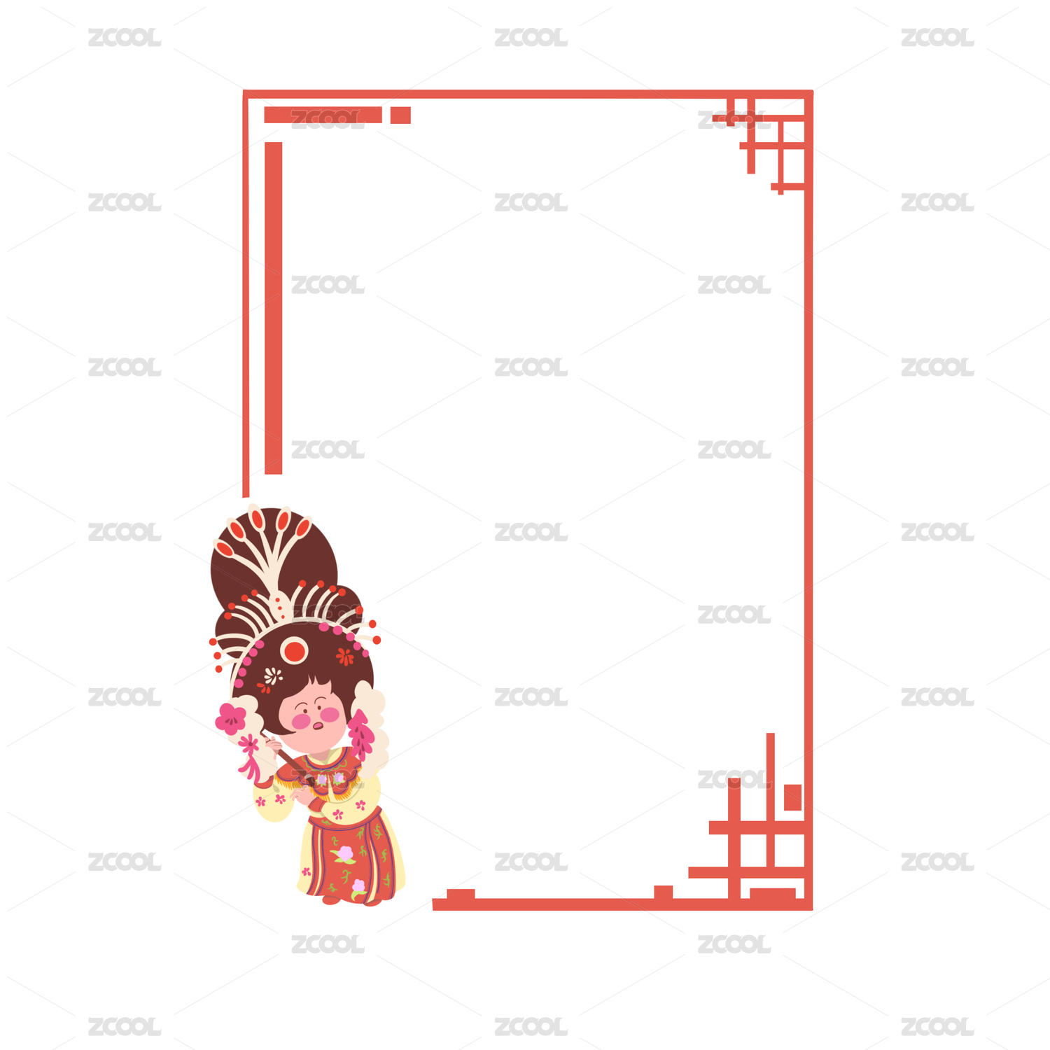 红色拿毛笔女性古风京剧人物边框