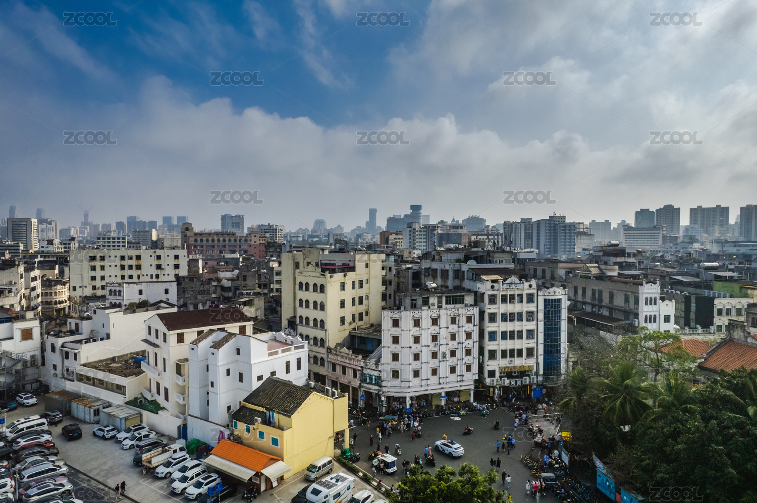 俯瞰春节时的海口市传统历史老街区建筑