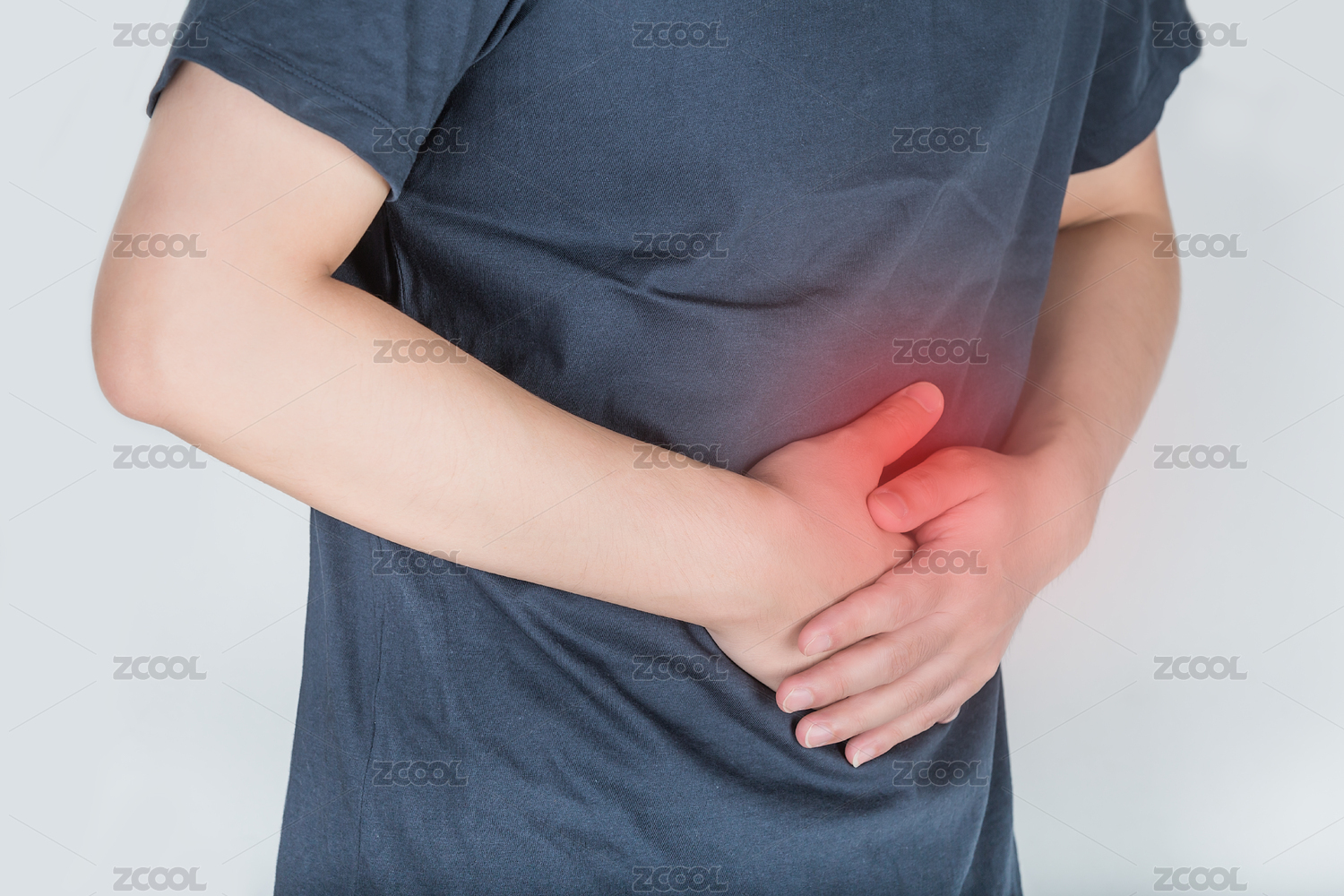 男人捂着腹部,常见疾病腹痛胃痛图片。