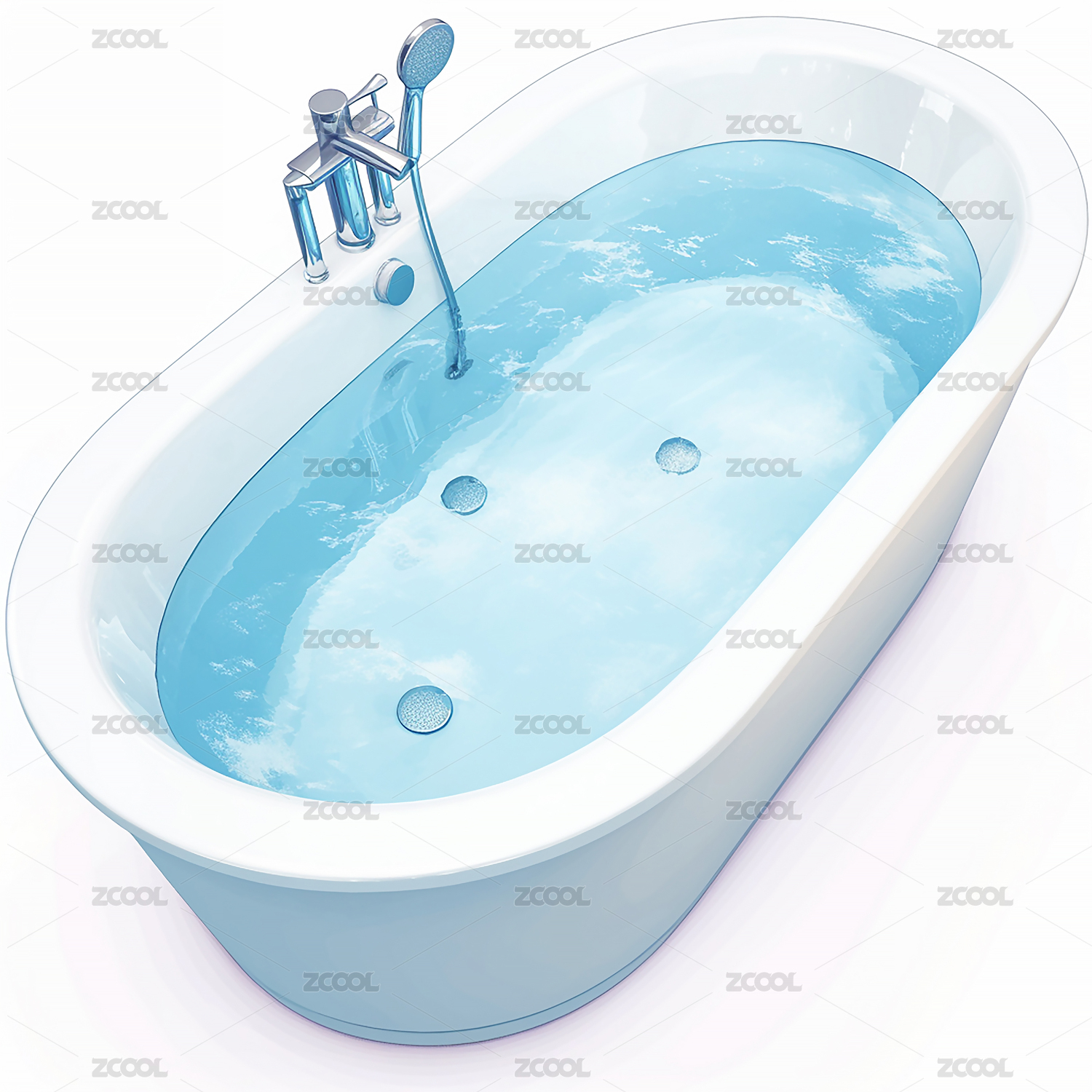 洗澡盆3D清洁卫生现代清洗沐浴卡通插画