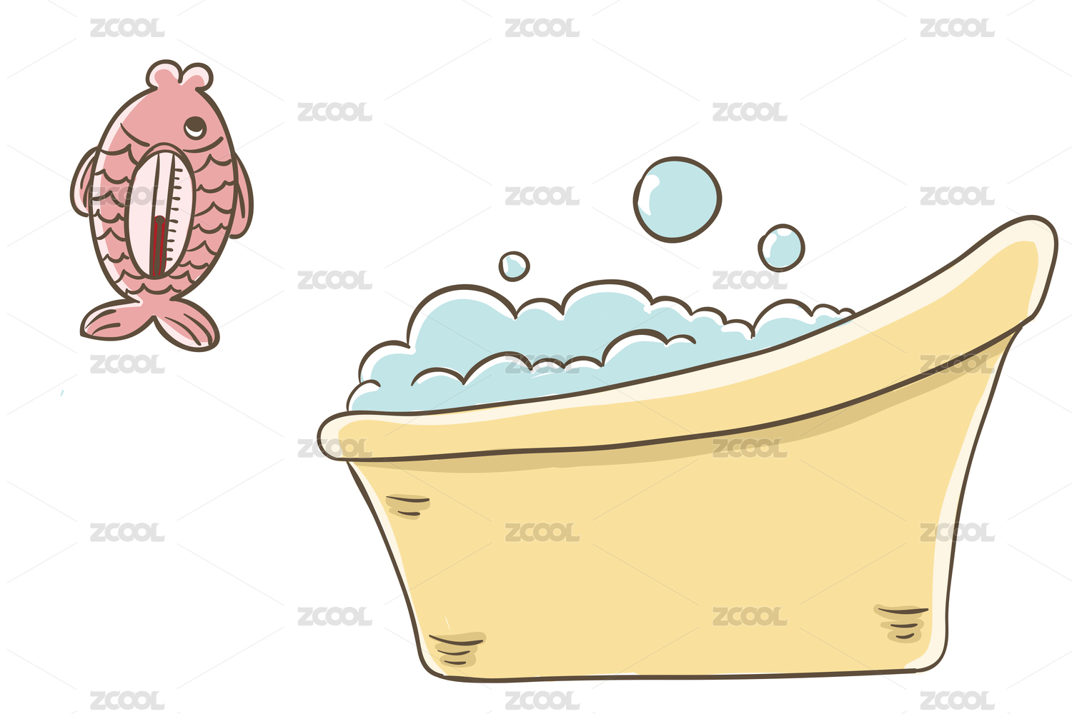 洗澡盆的3D卡通插画