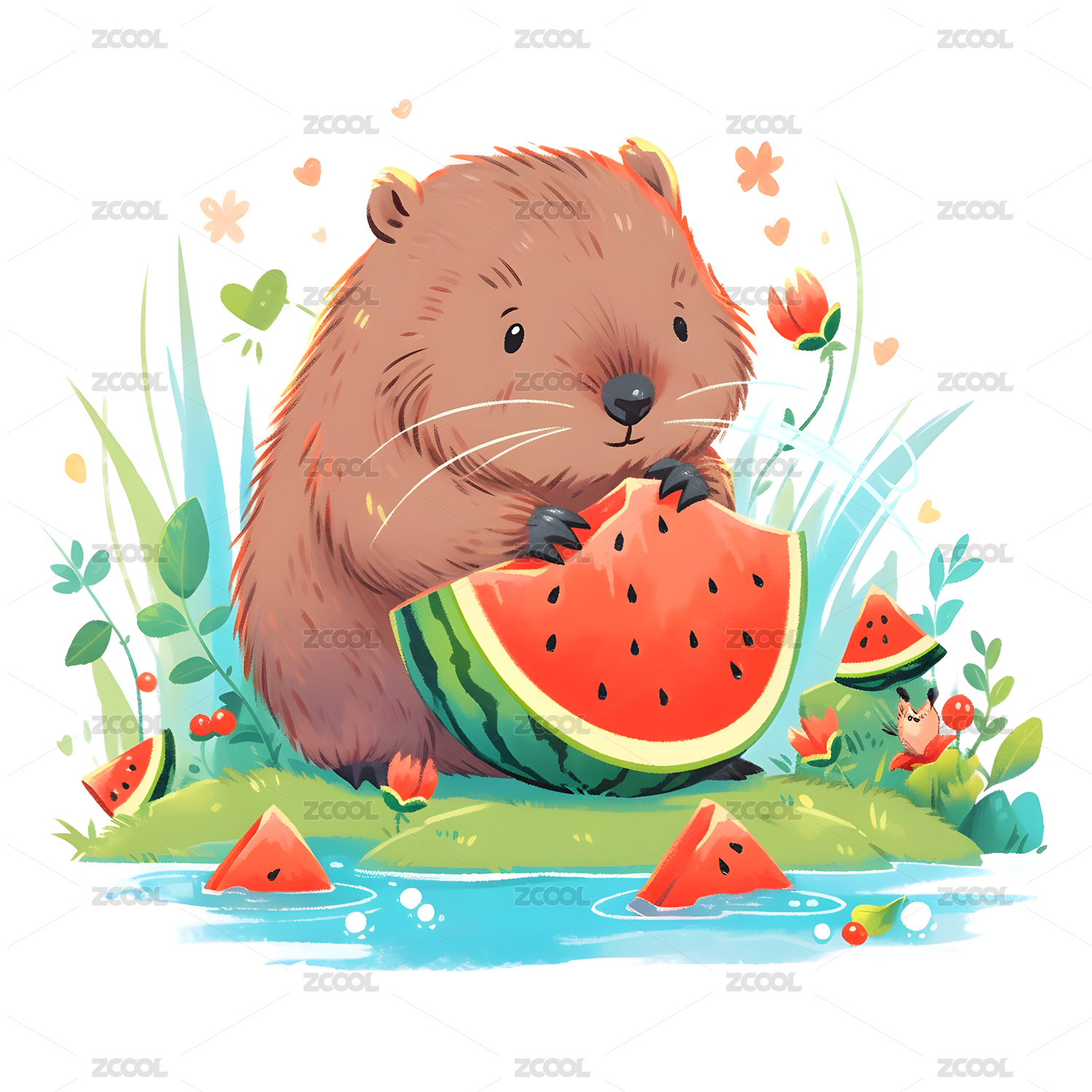 AI插图可爱的卡皮巴拉水豚