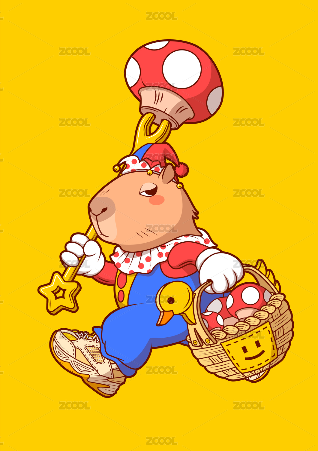 一只可爱的卡通水豚插画