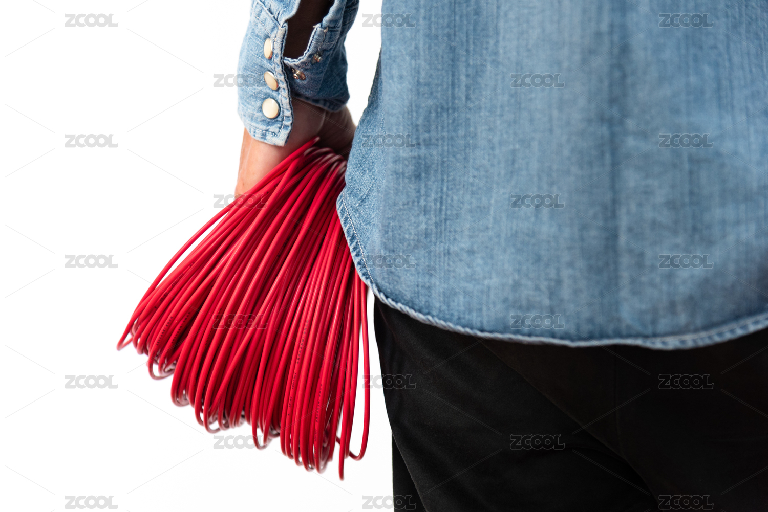 白色背景下单手拿电线
