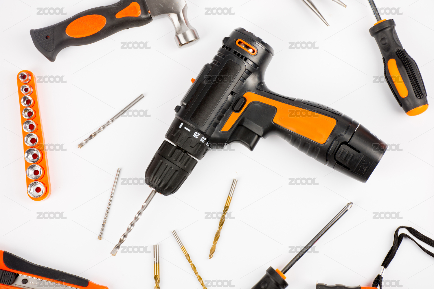放在白色背景上的电转和电工工具
