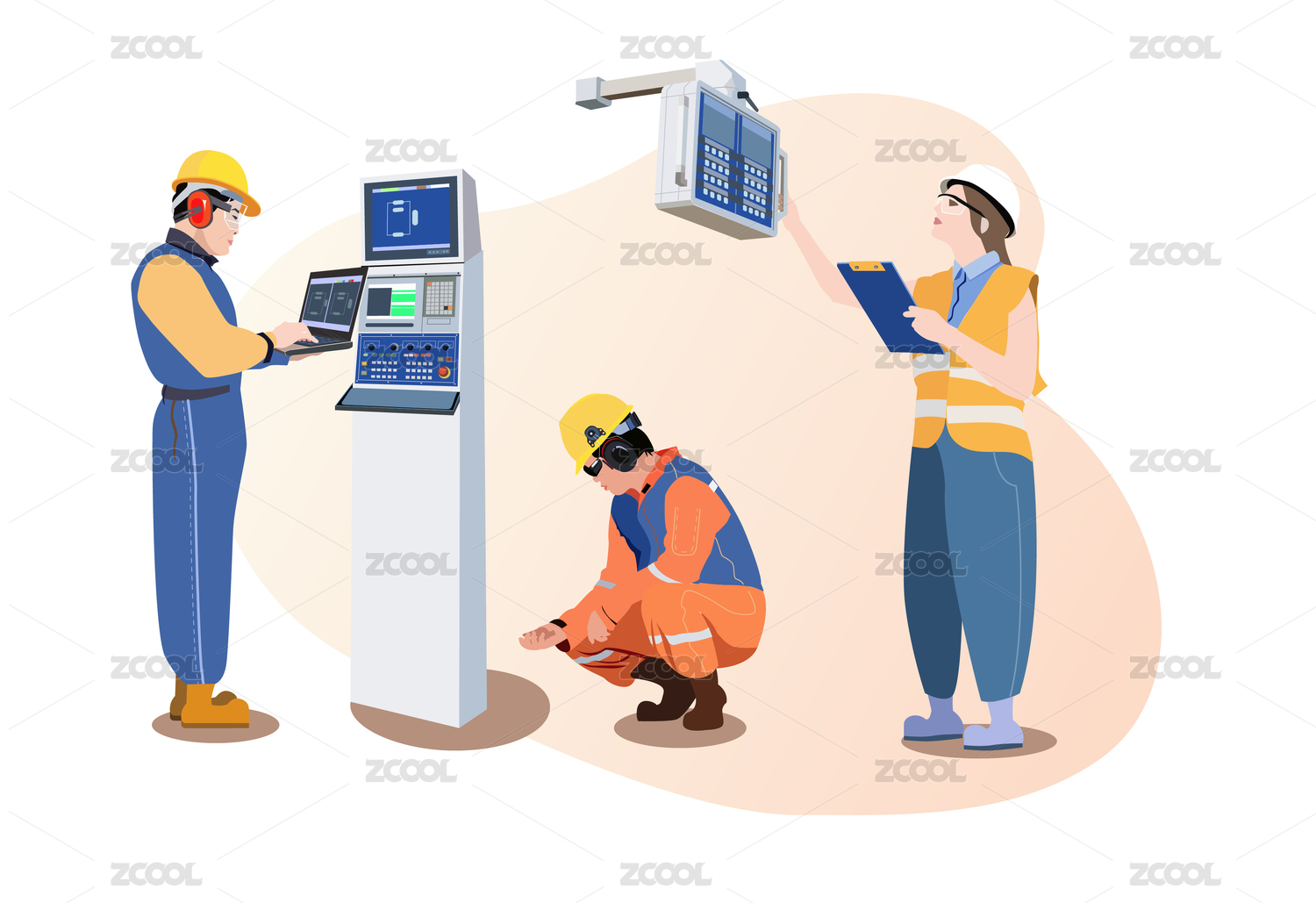 管道工和电工 卡通扁平人物
