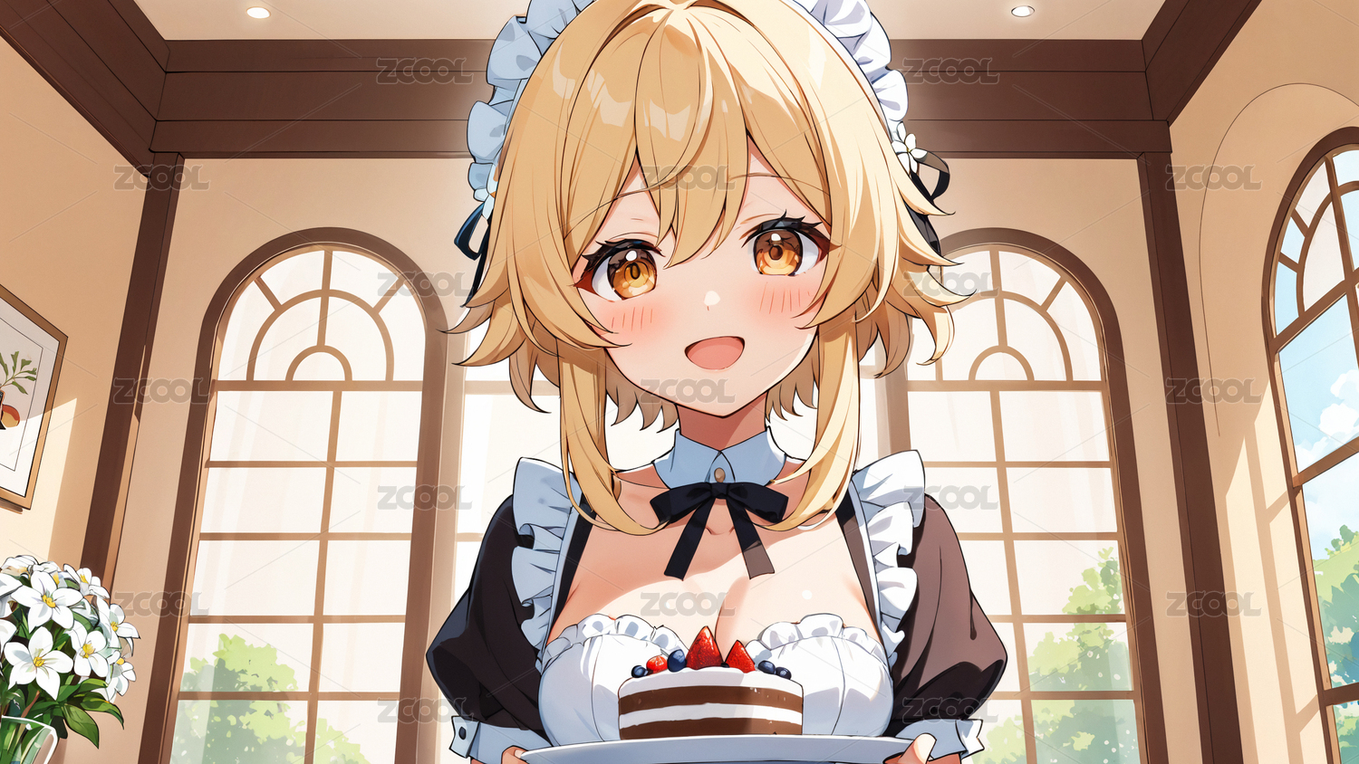 卡哇伊拿着樱桃饮料穿女仆装的女生