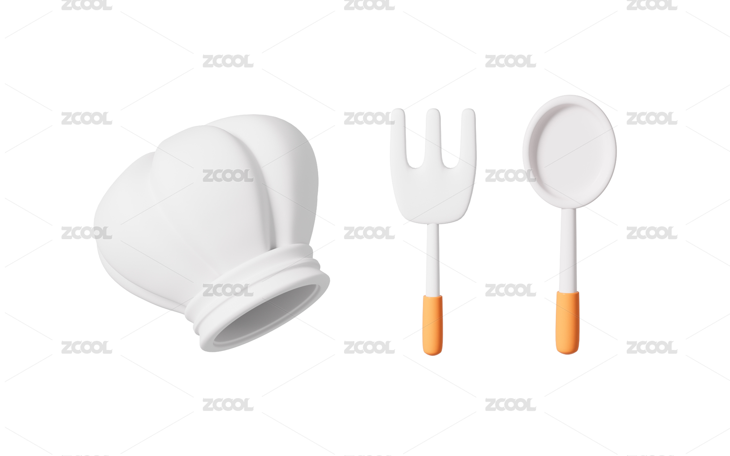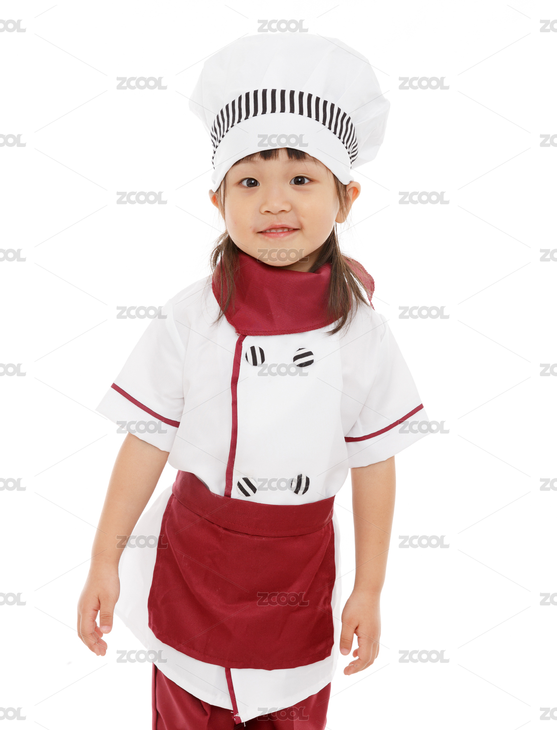 卡通矢量手拿餐具头戴厨师帽的小女孩