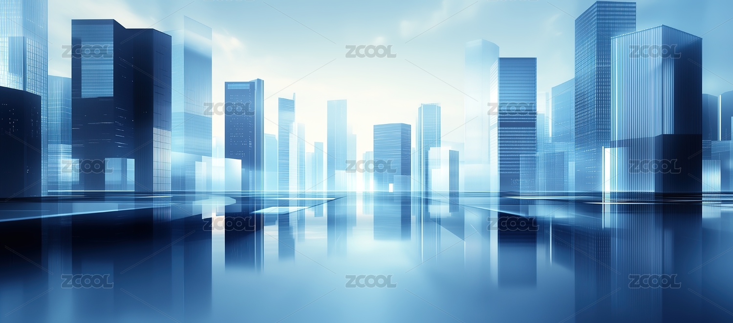 玻璃城市 蓝色 科技 AI 未来 摩天楼
