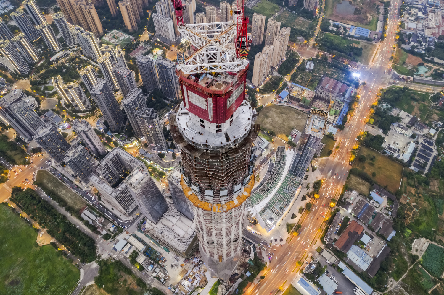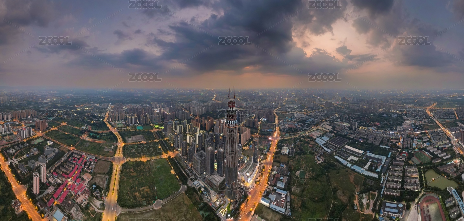航拍建设中的成都最高摩天楼及周边城市夜景
