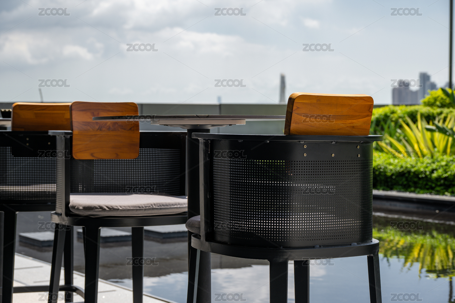 现代户外露台座椅与城市景观