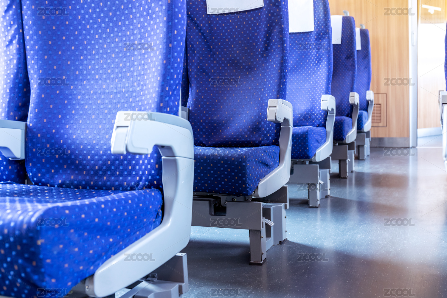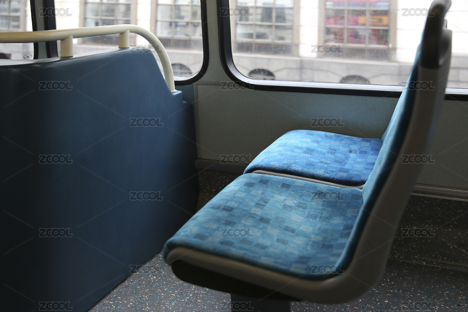 城市列车中的蓝色座椅