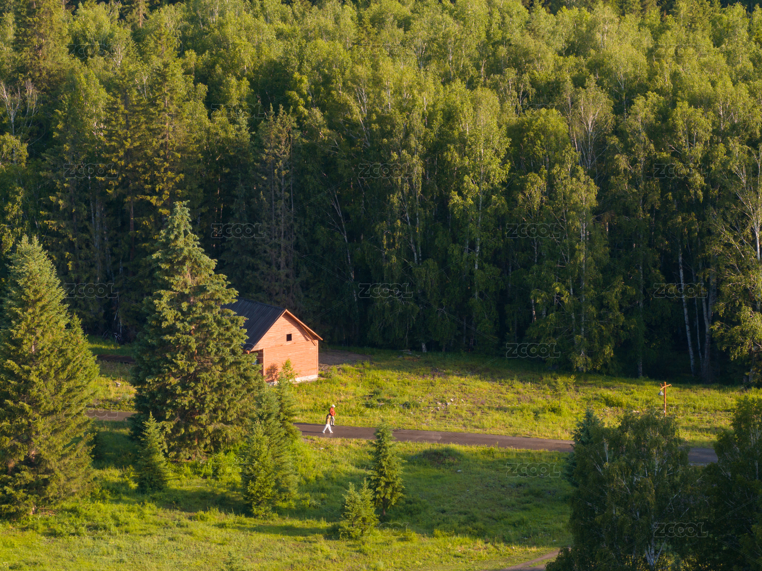 老年人夫妻在后院跳交际舞 可爱风格重阳节老年生活插画