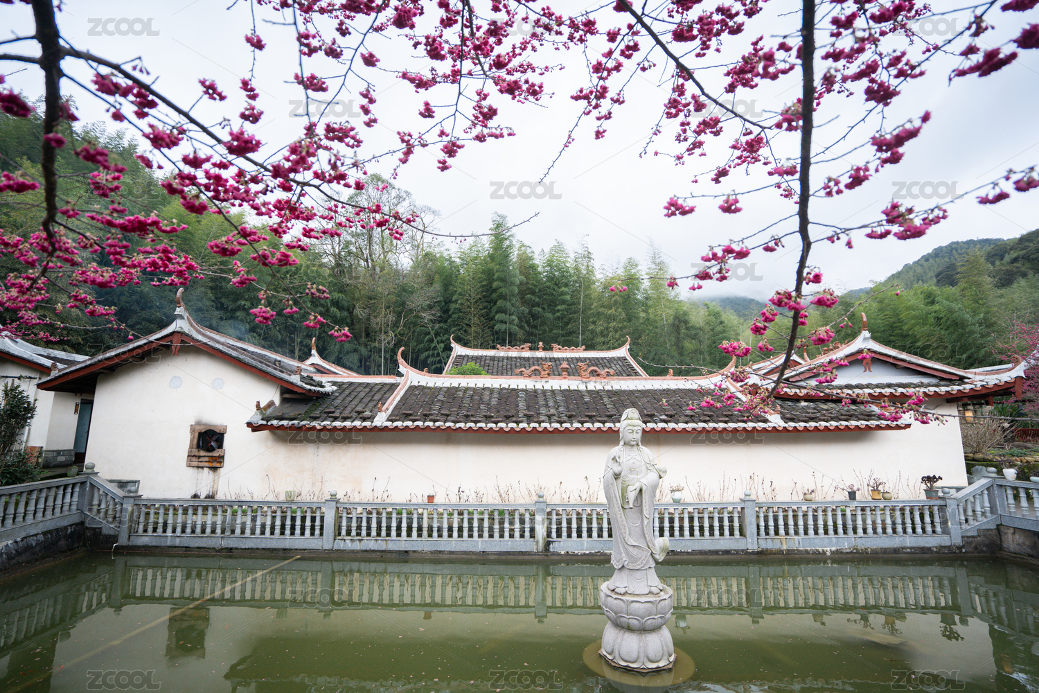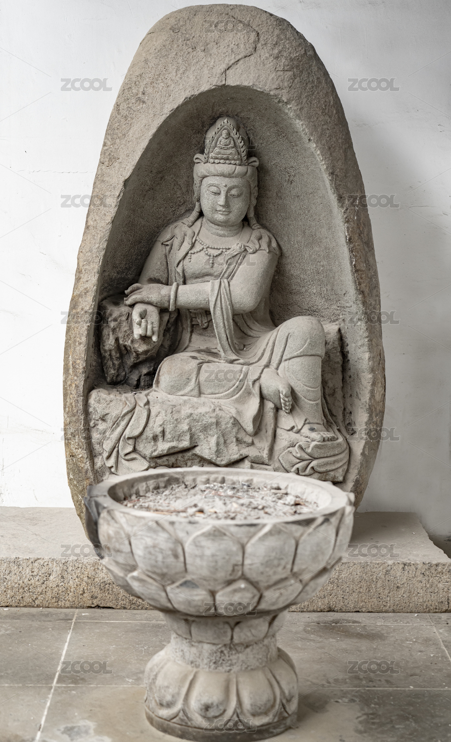泰国寺庙供奉三面佛和观音像的神龛神台