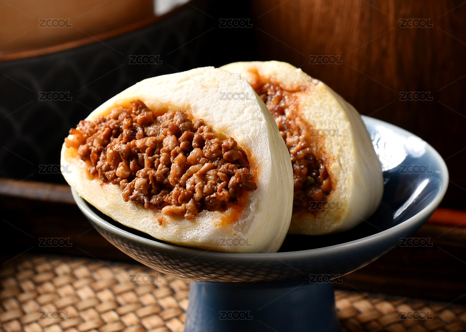 木纹桌上的美味酱肉包子