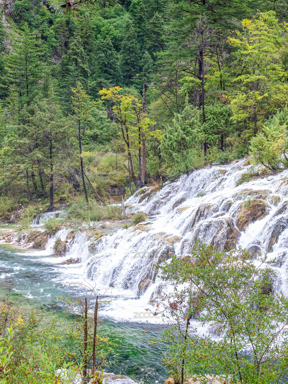 冬天中国四川阿坝九寨沟双龙海瀑布自然风光