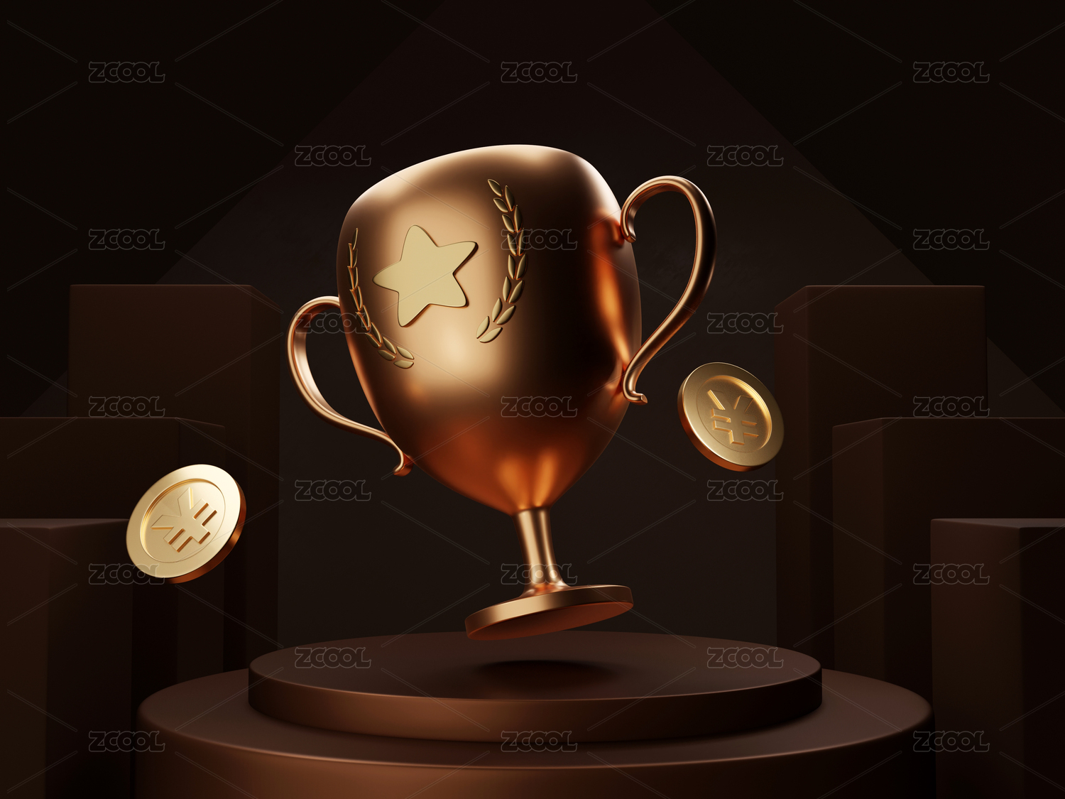 3d渲染获奖奖金奖杯概念插图