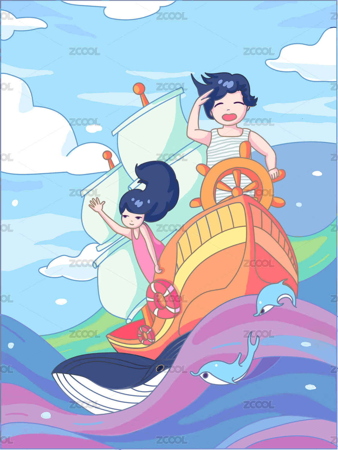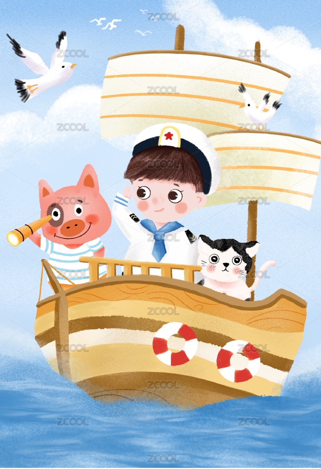 乘风破浪 航海插画