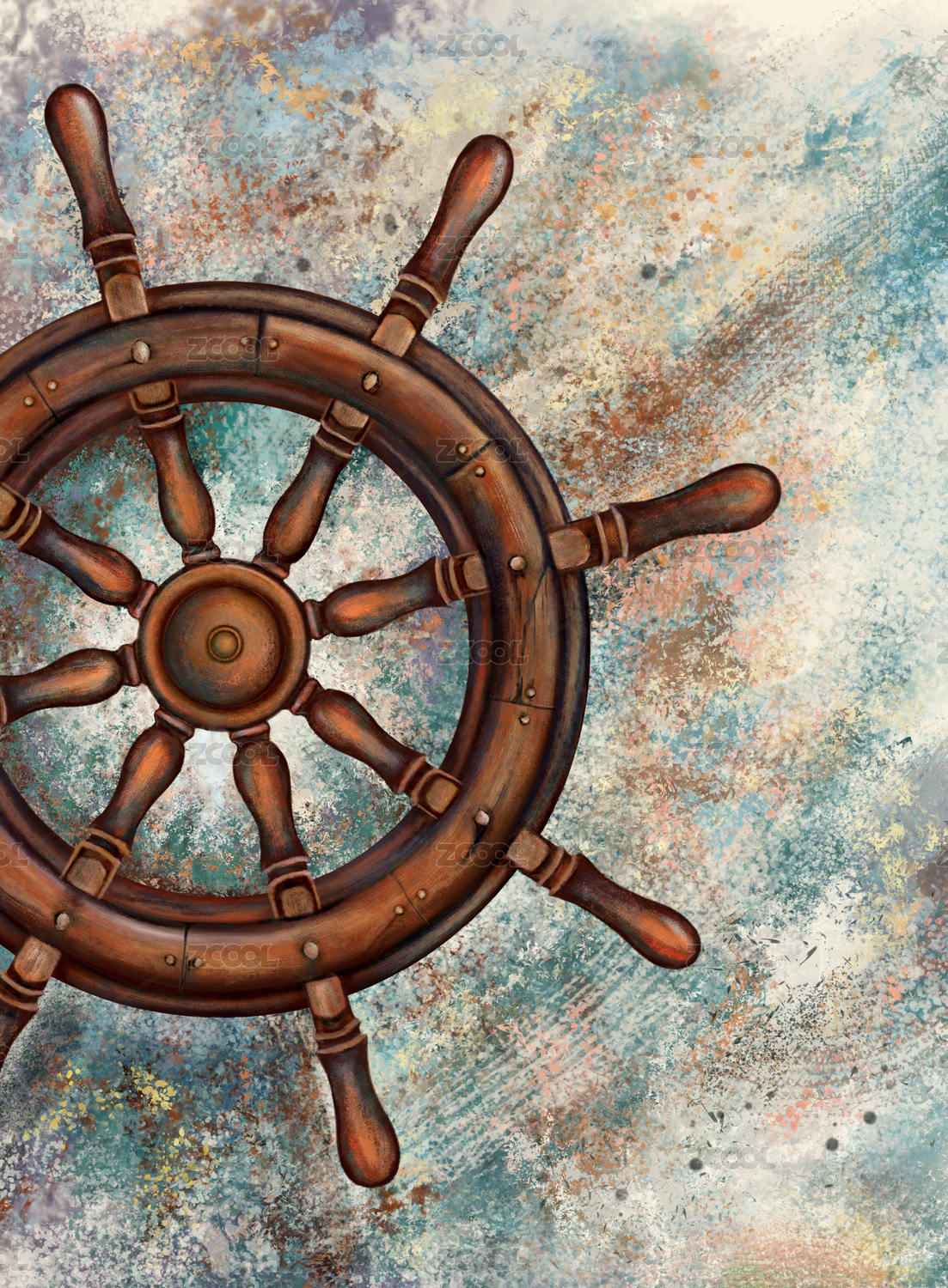 印象艺术绘画作品航海用品老旧的船舵