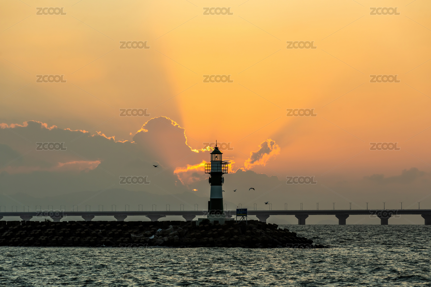 中国珠海城市景观九洲港码头航海灯塔晨曦