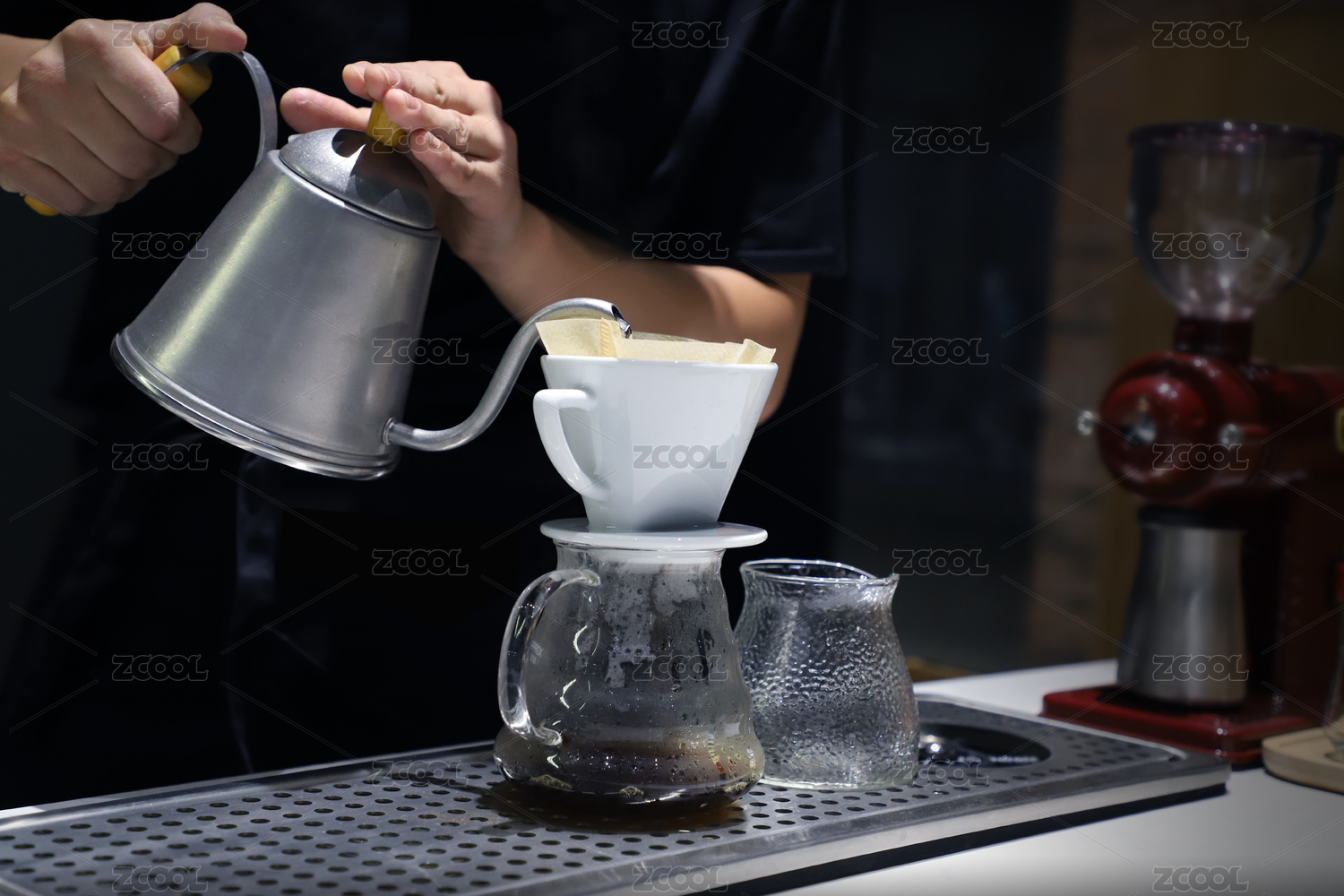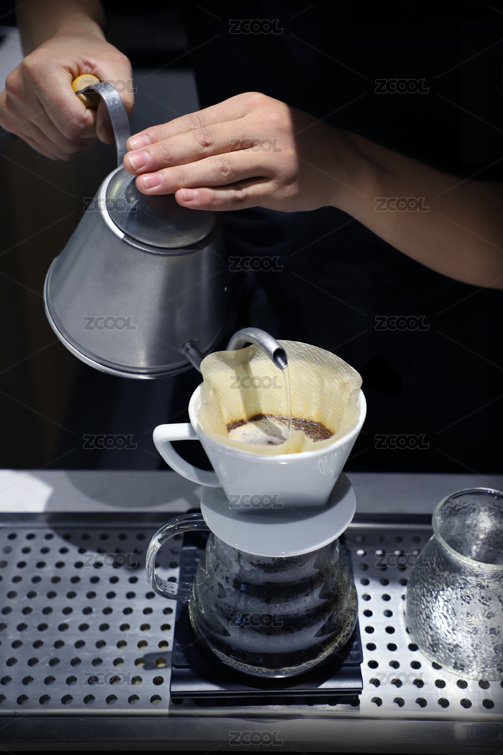 手冲壶向咖啡滤杯注水冲泡咖啡