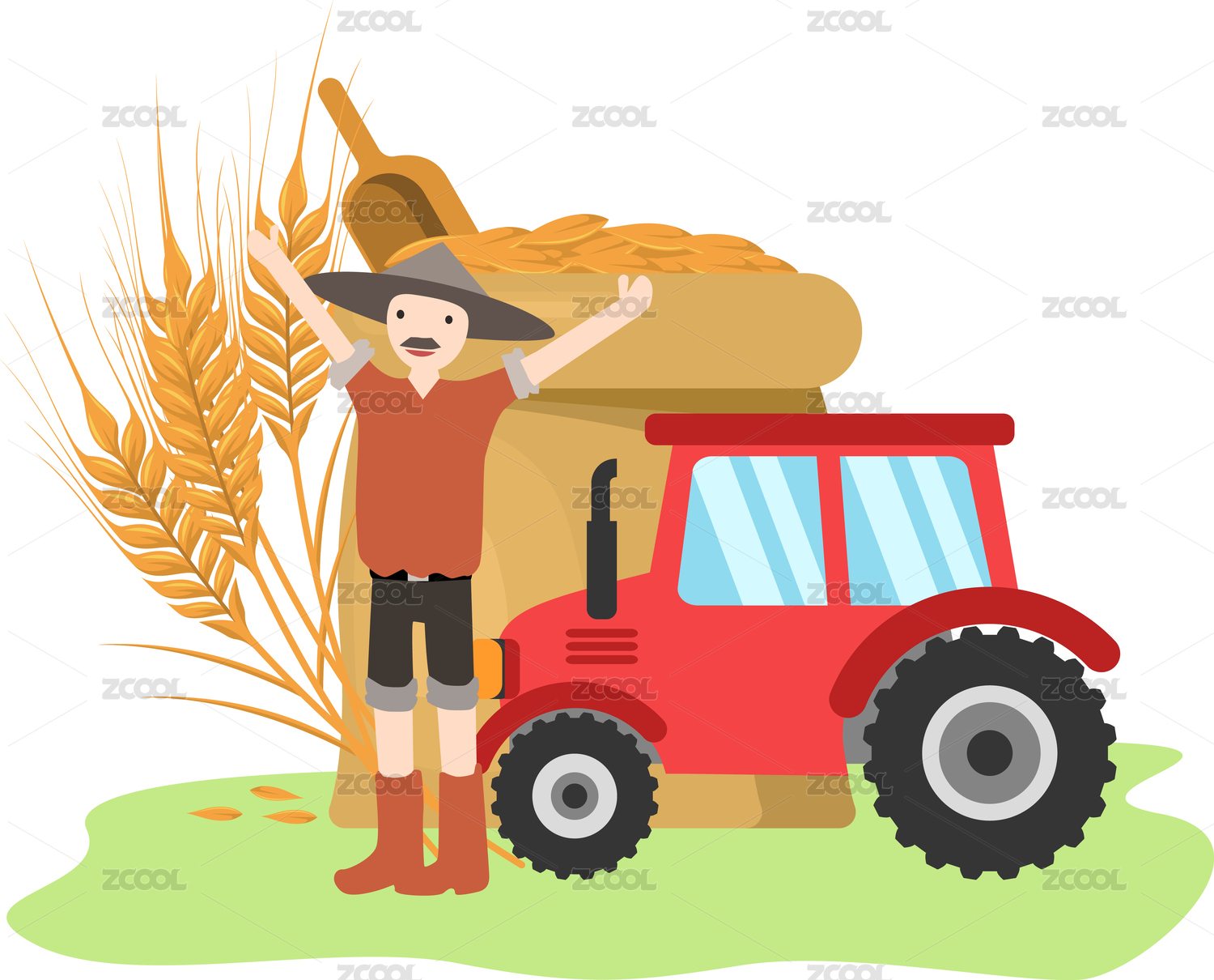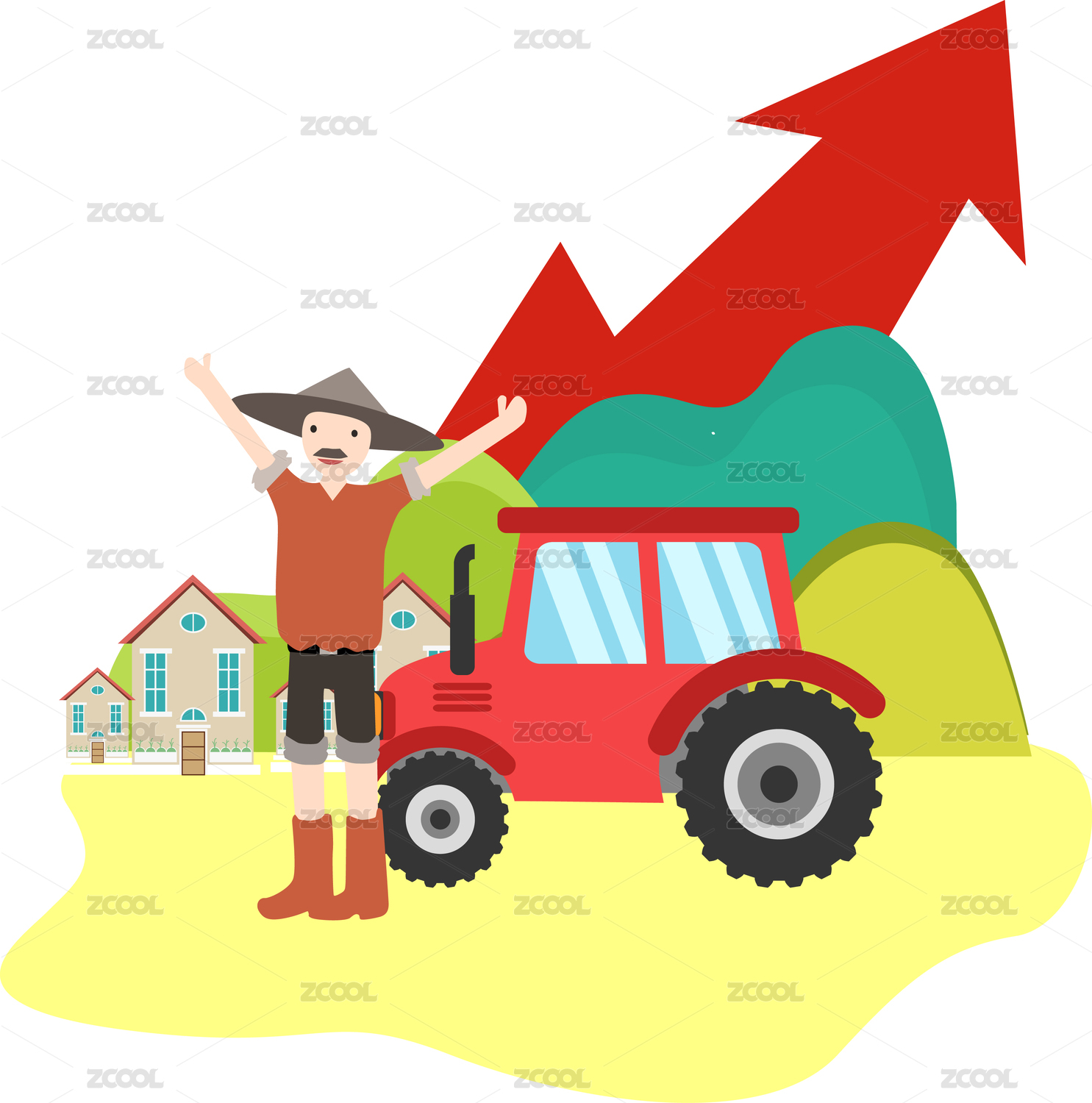 卡通农业科技农场乡村发展拖拉机矢量插画