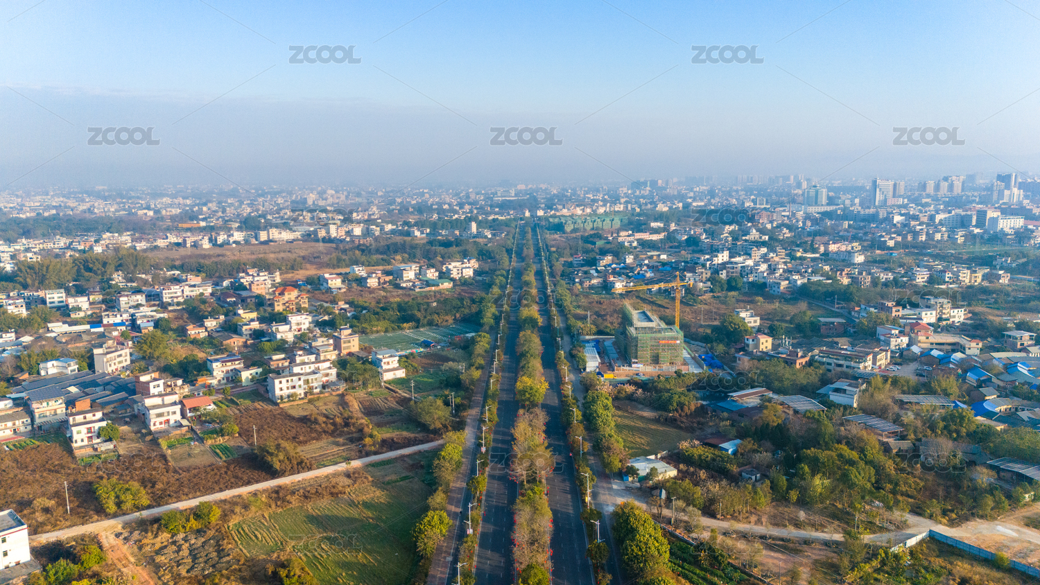 航拍冬季清晨中国广东梅州兴宁城镇乡村发展