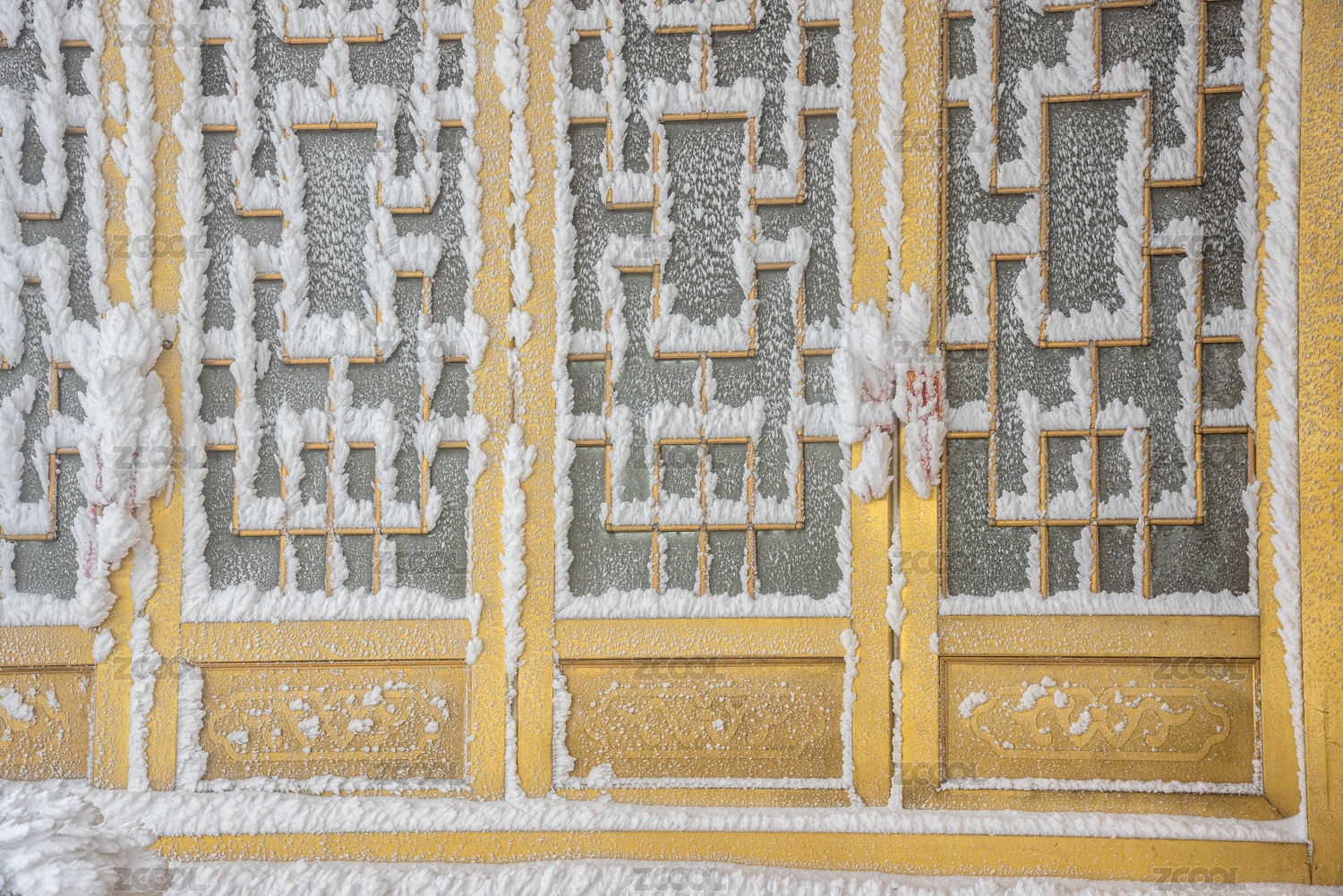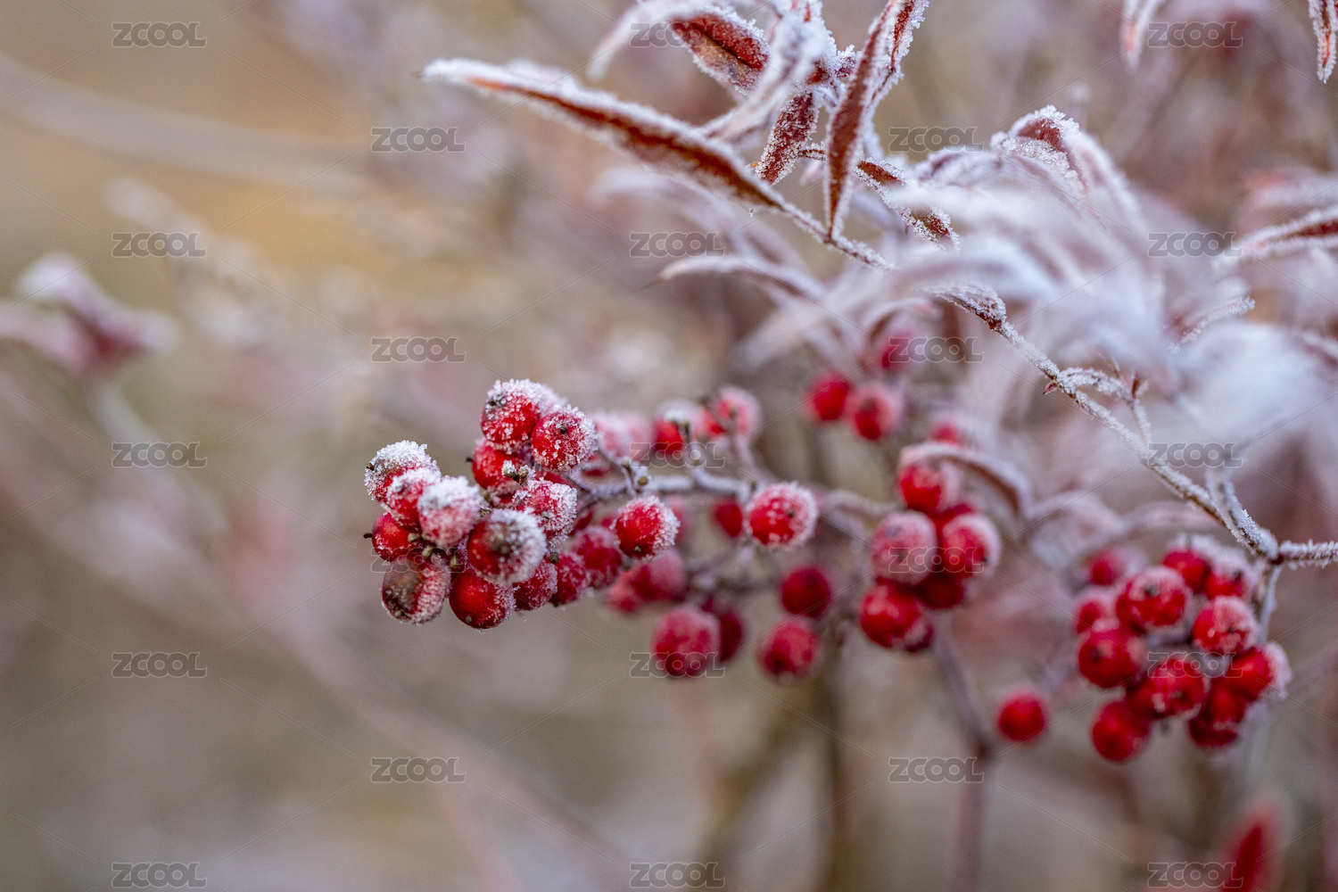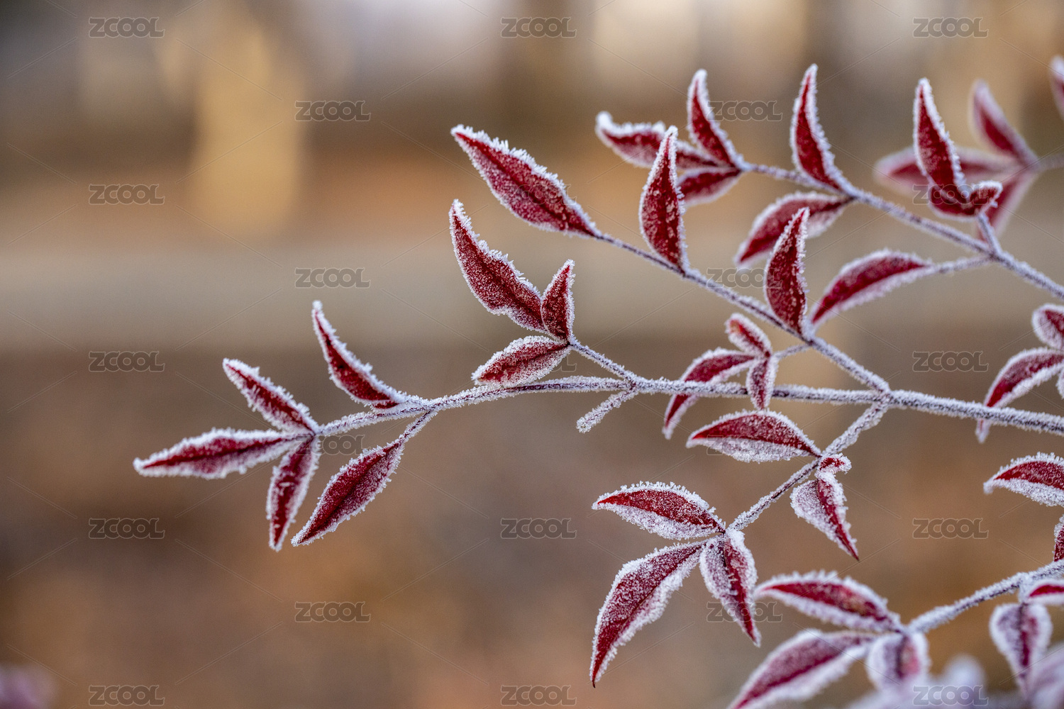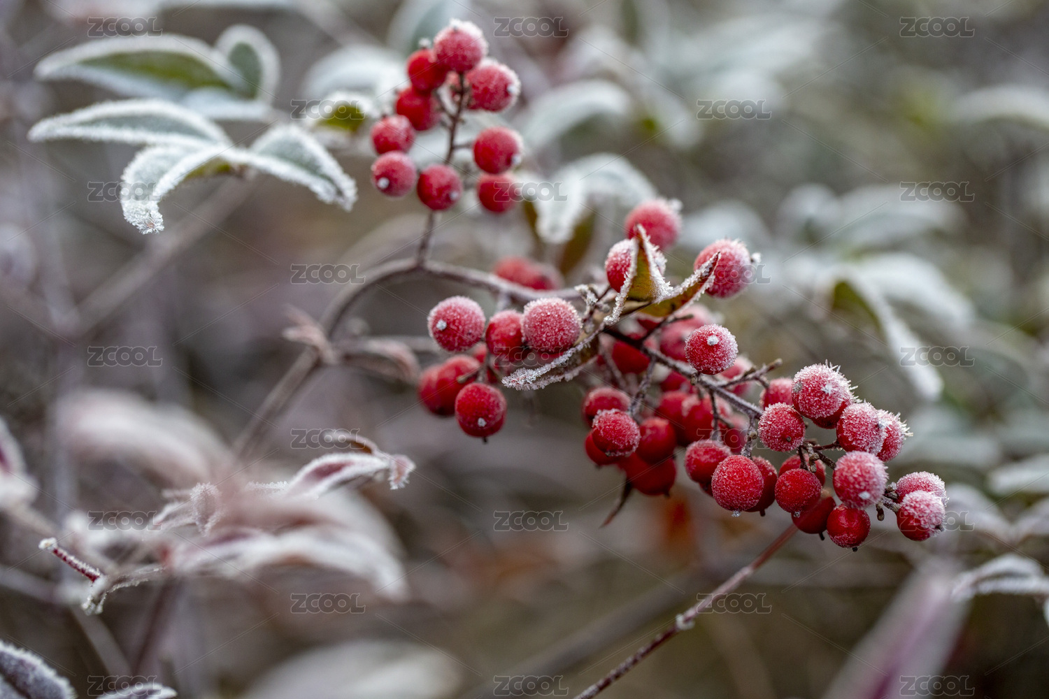 中国江苏淮安古淮河湿地公园冰霜下的南天竹