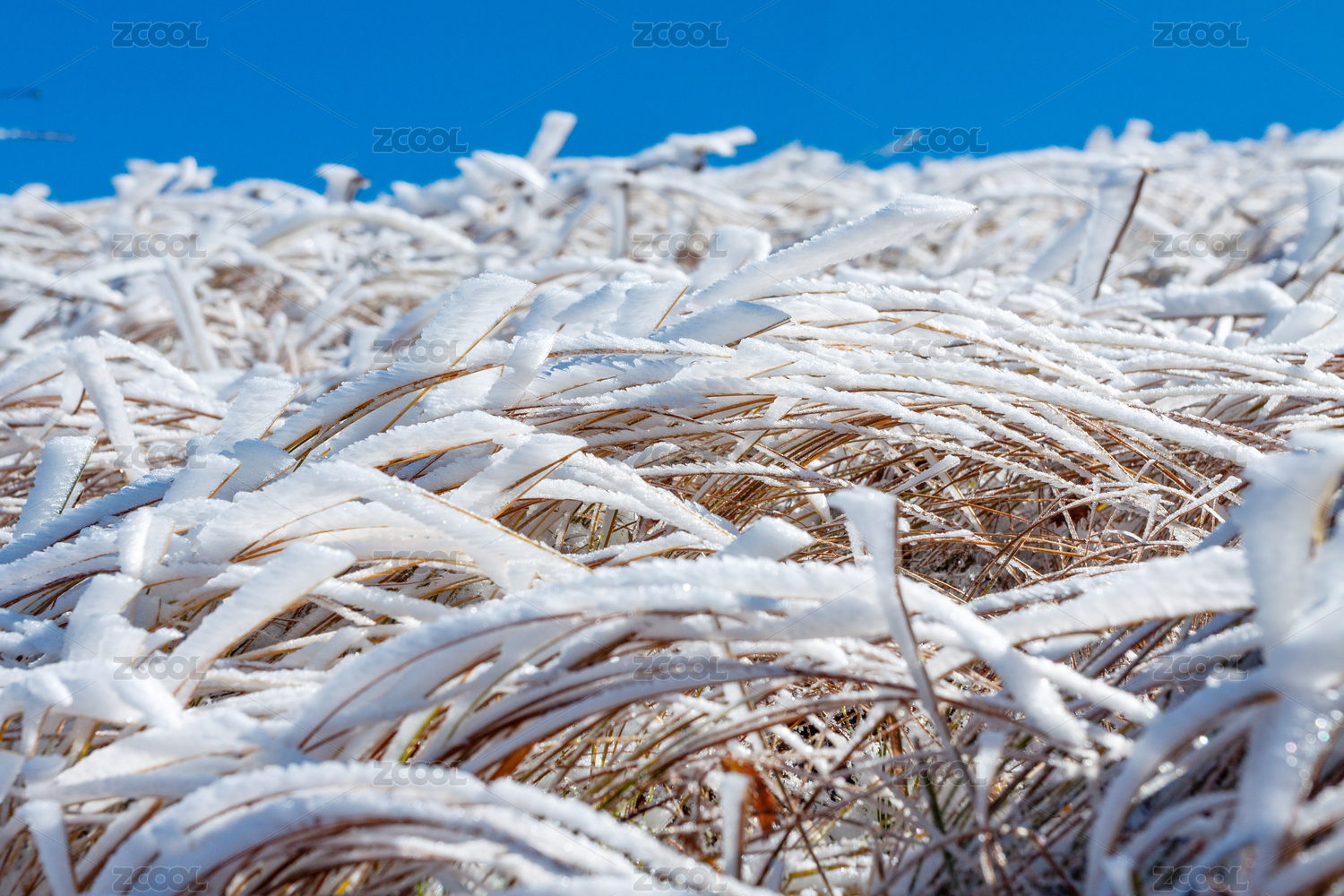 冬季草地草本植物上结满冰霜特写