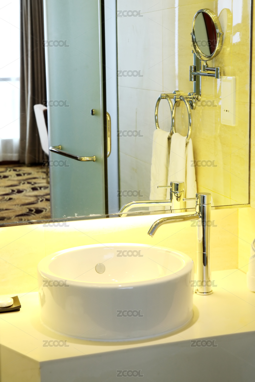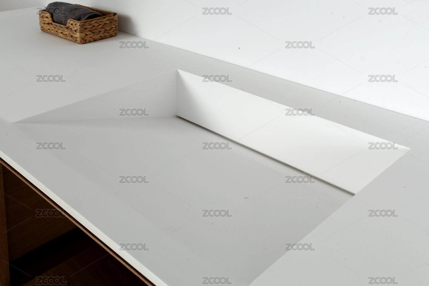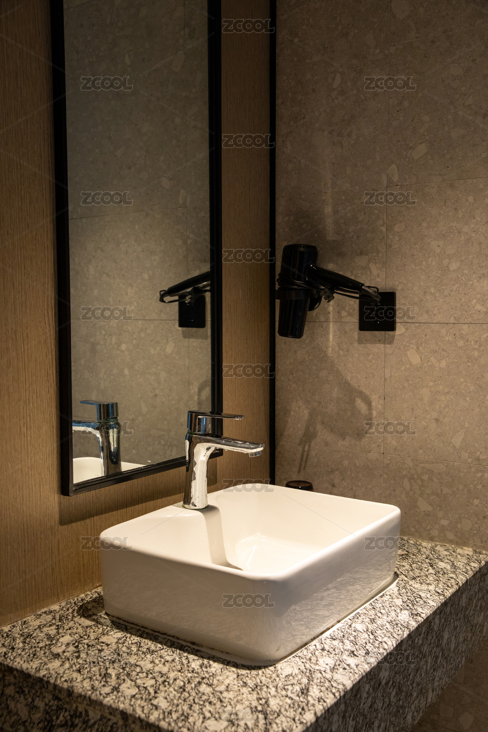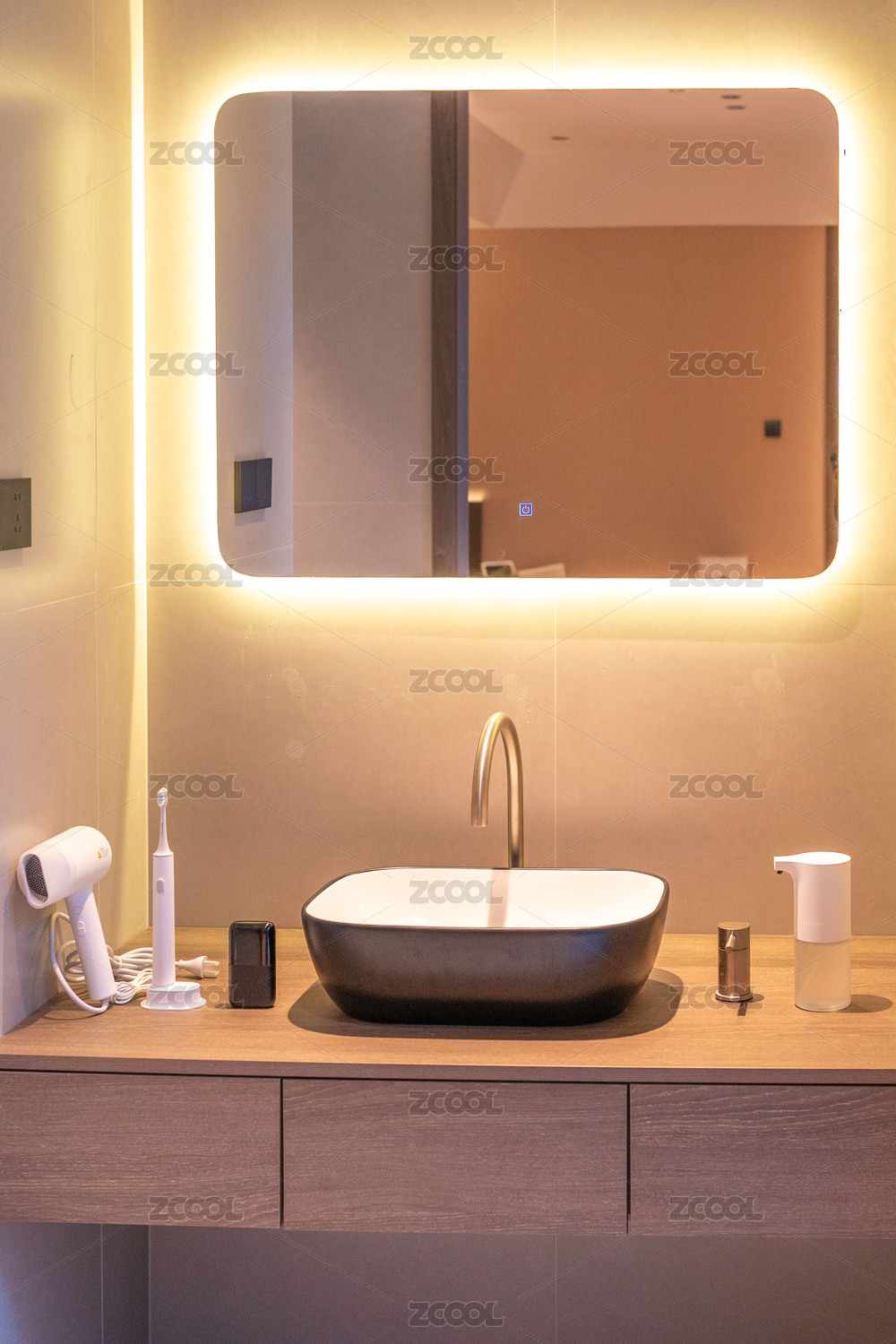 干净整洁的洗脸台和极简风格陶瓷洗脸盆