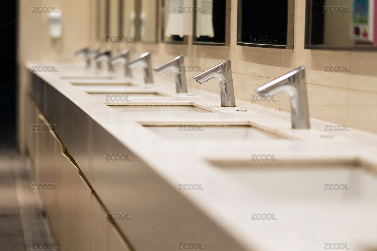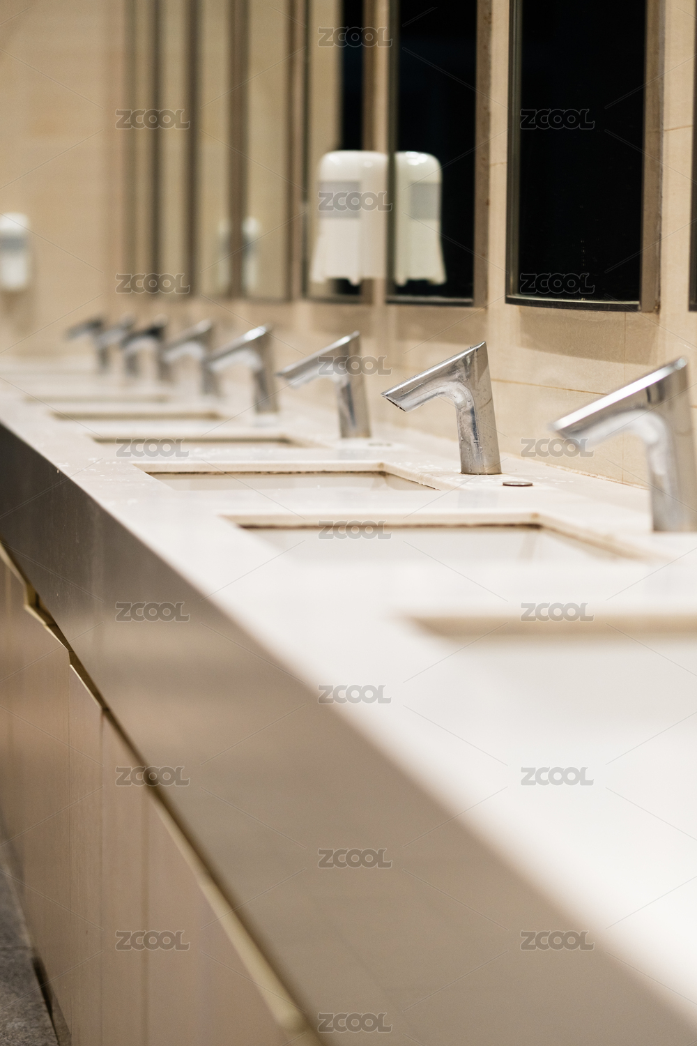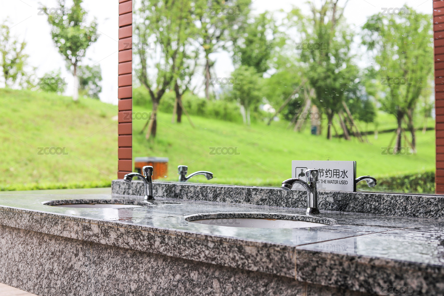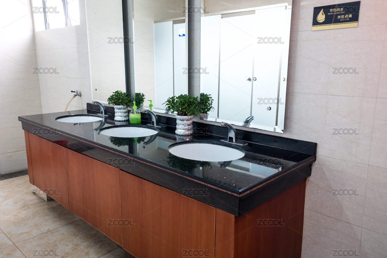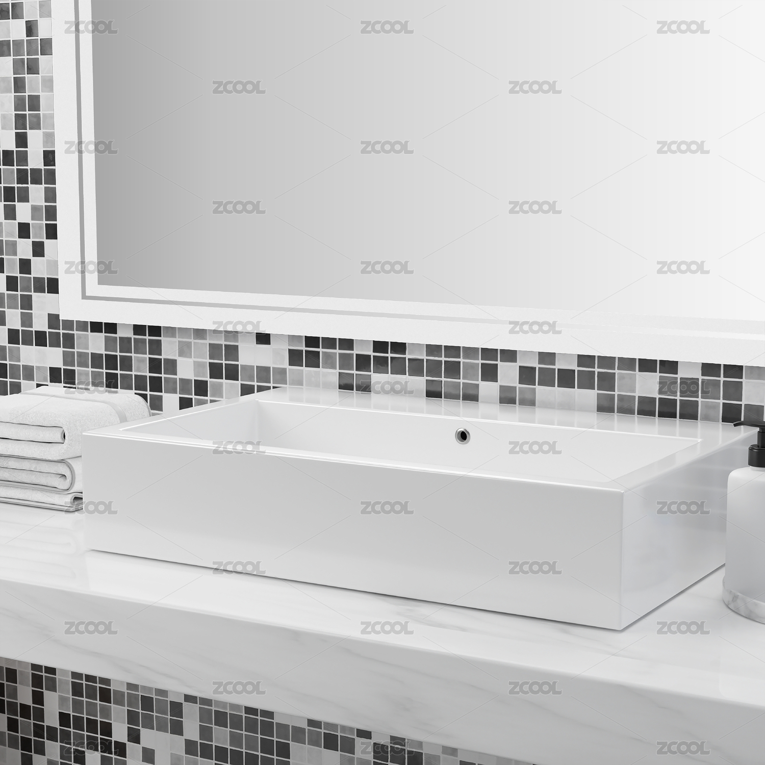 干净整洁的洗脸台和极简风格陶瓷洗脸盆