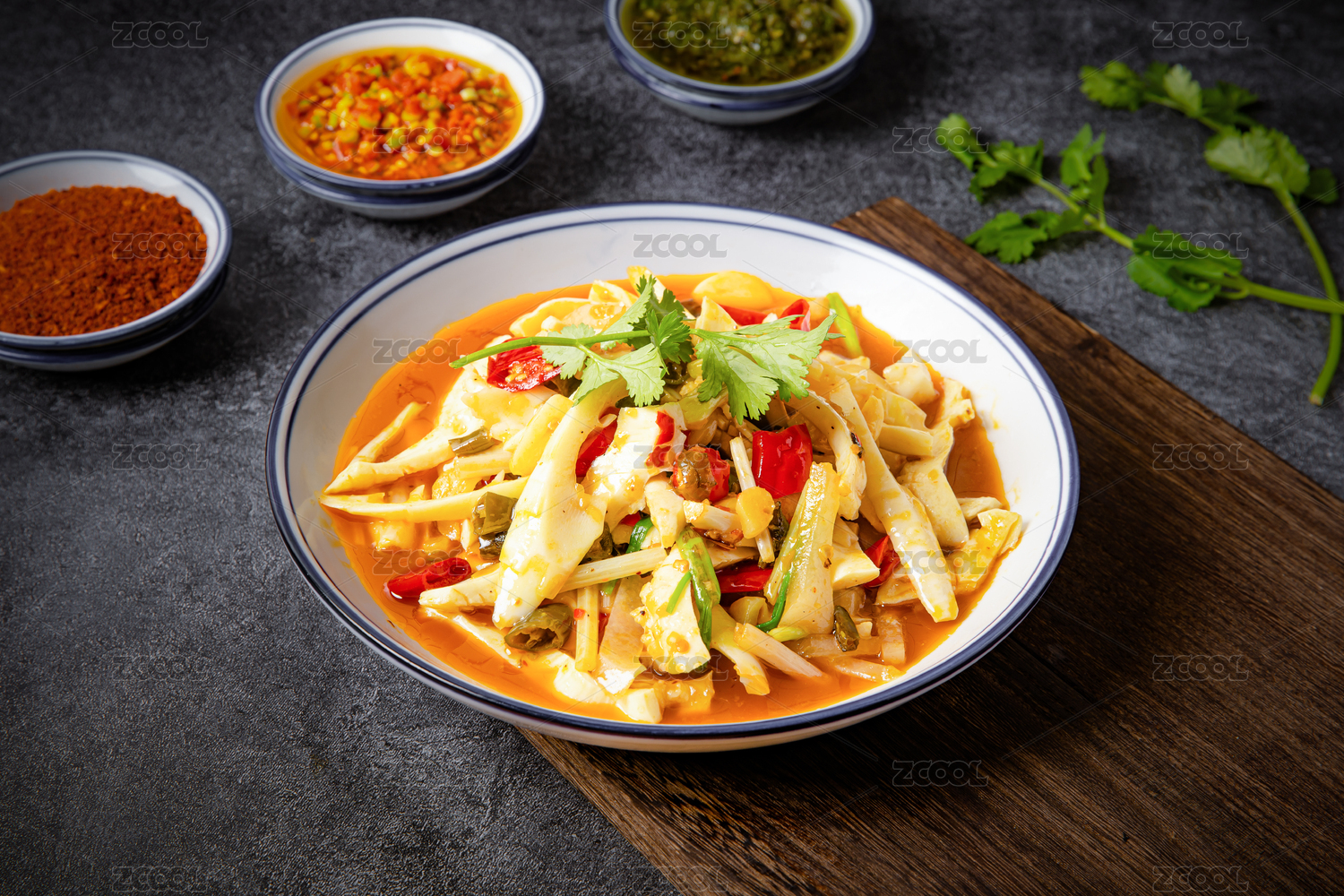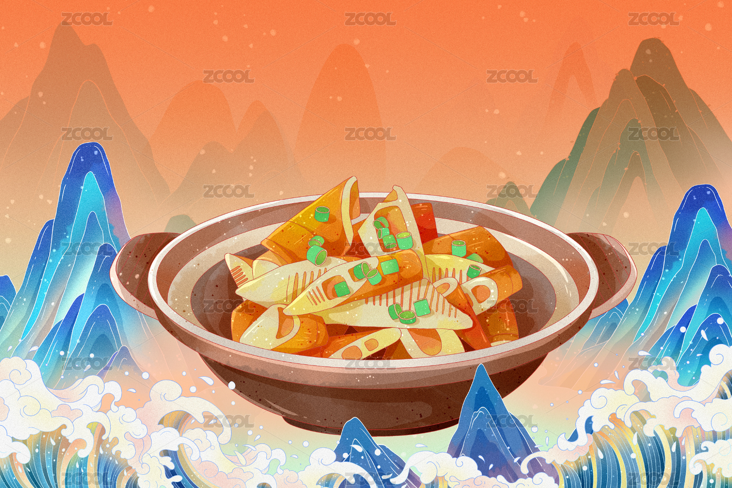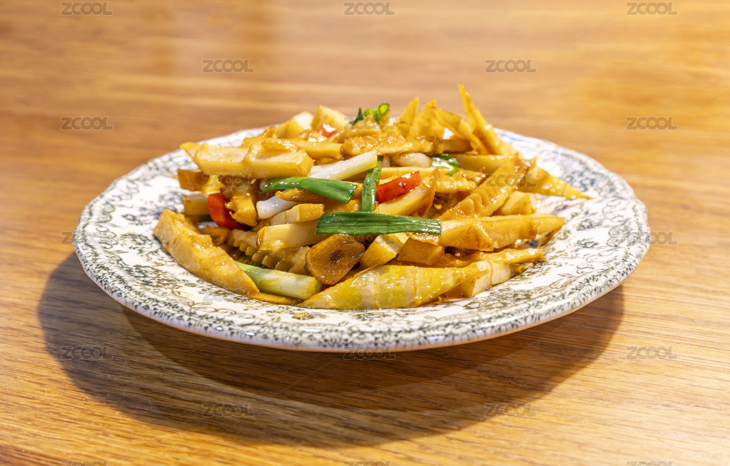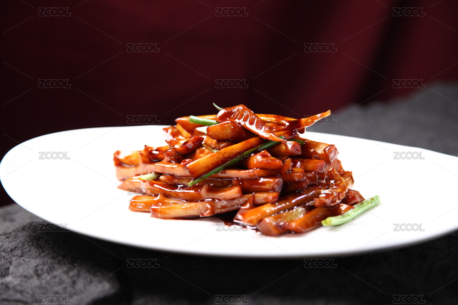 白色盘子黑色背景下江南地区特色菜油焖鲜笋