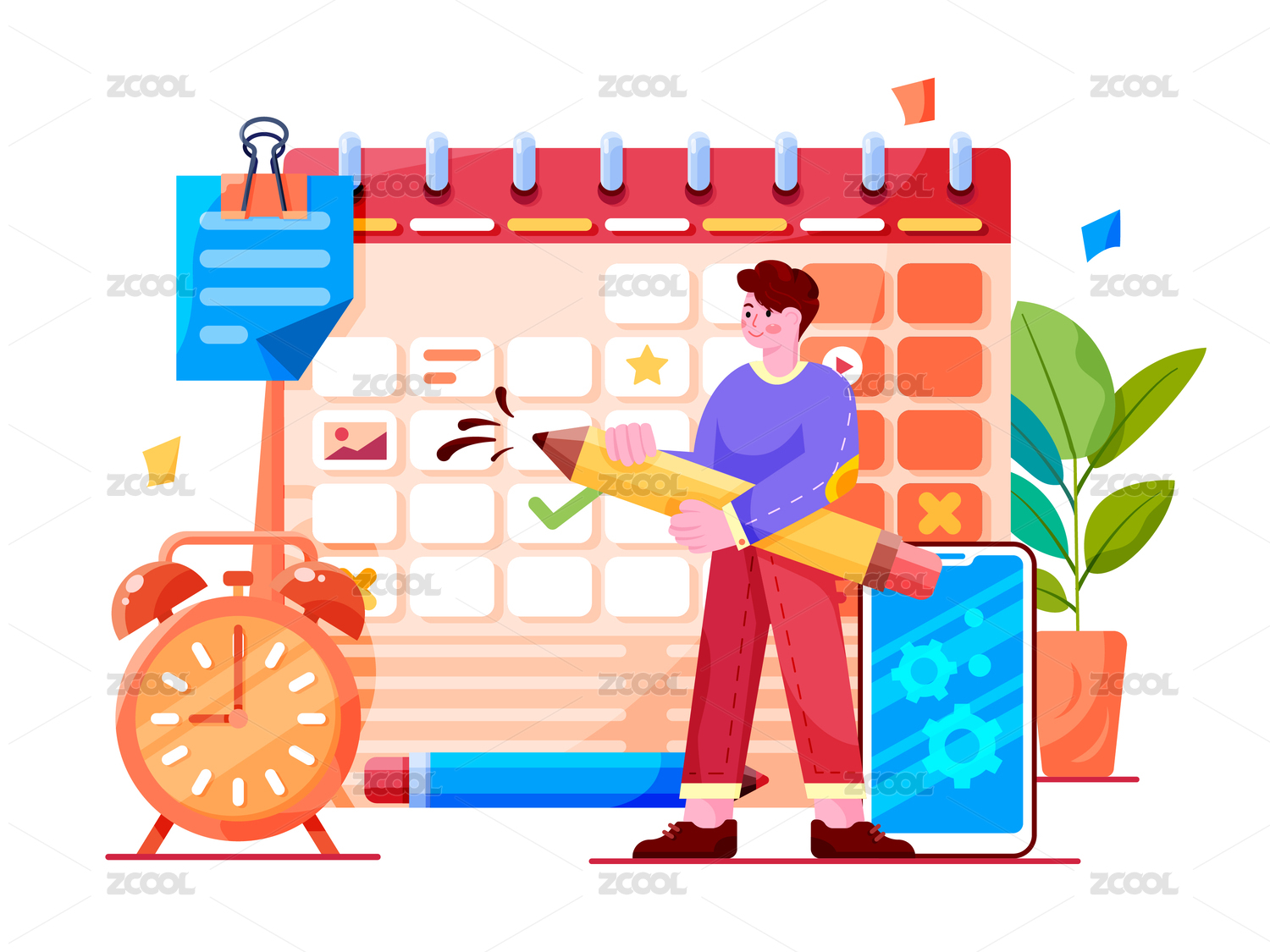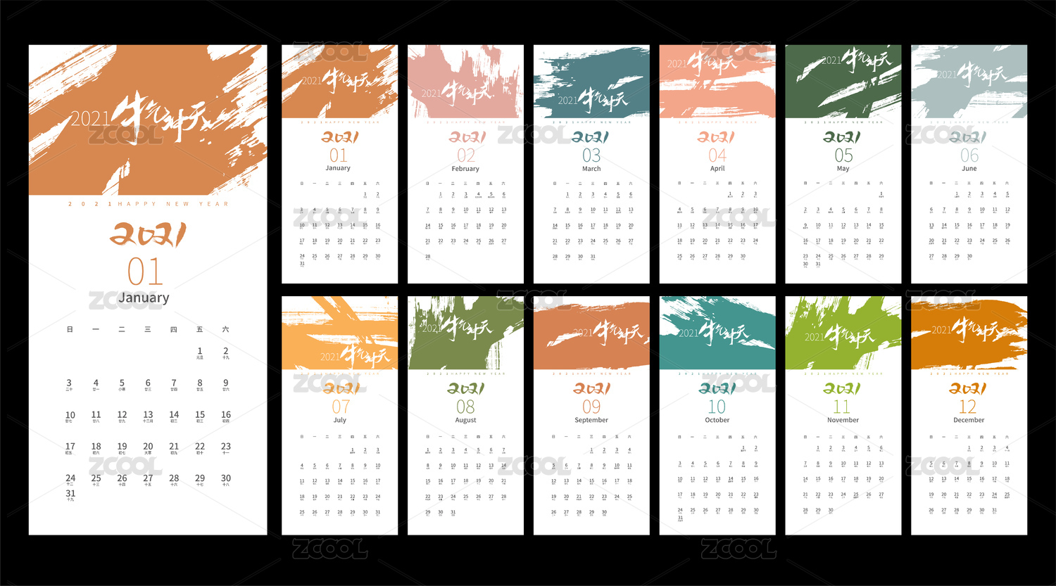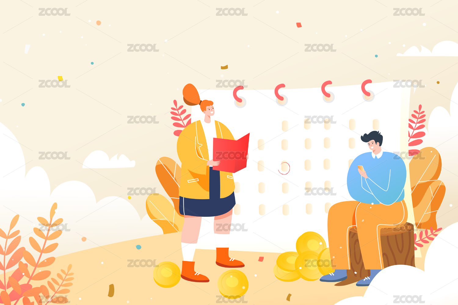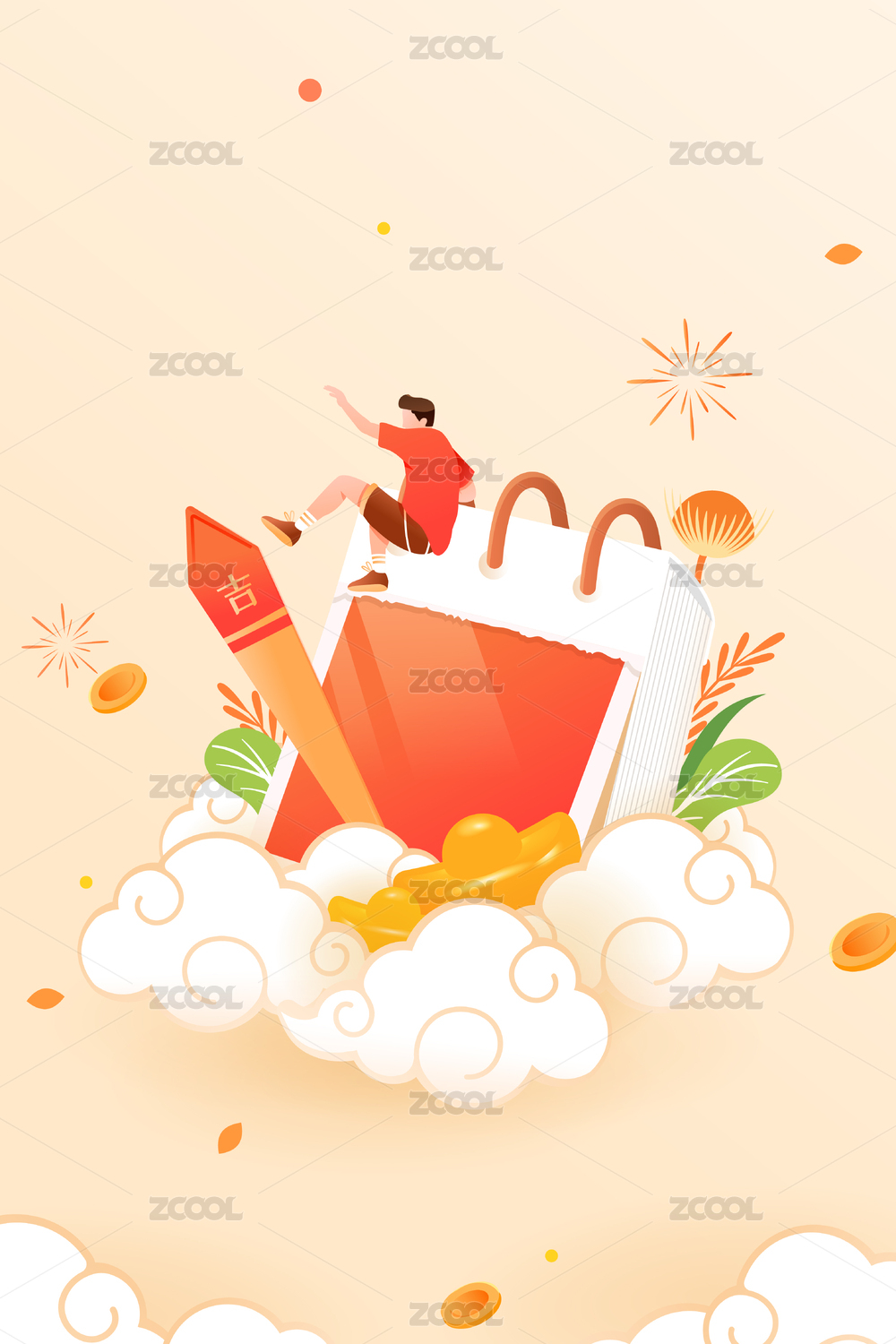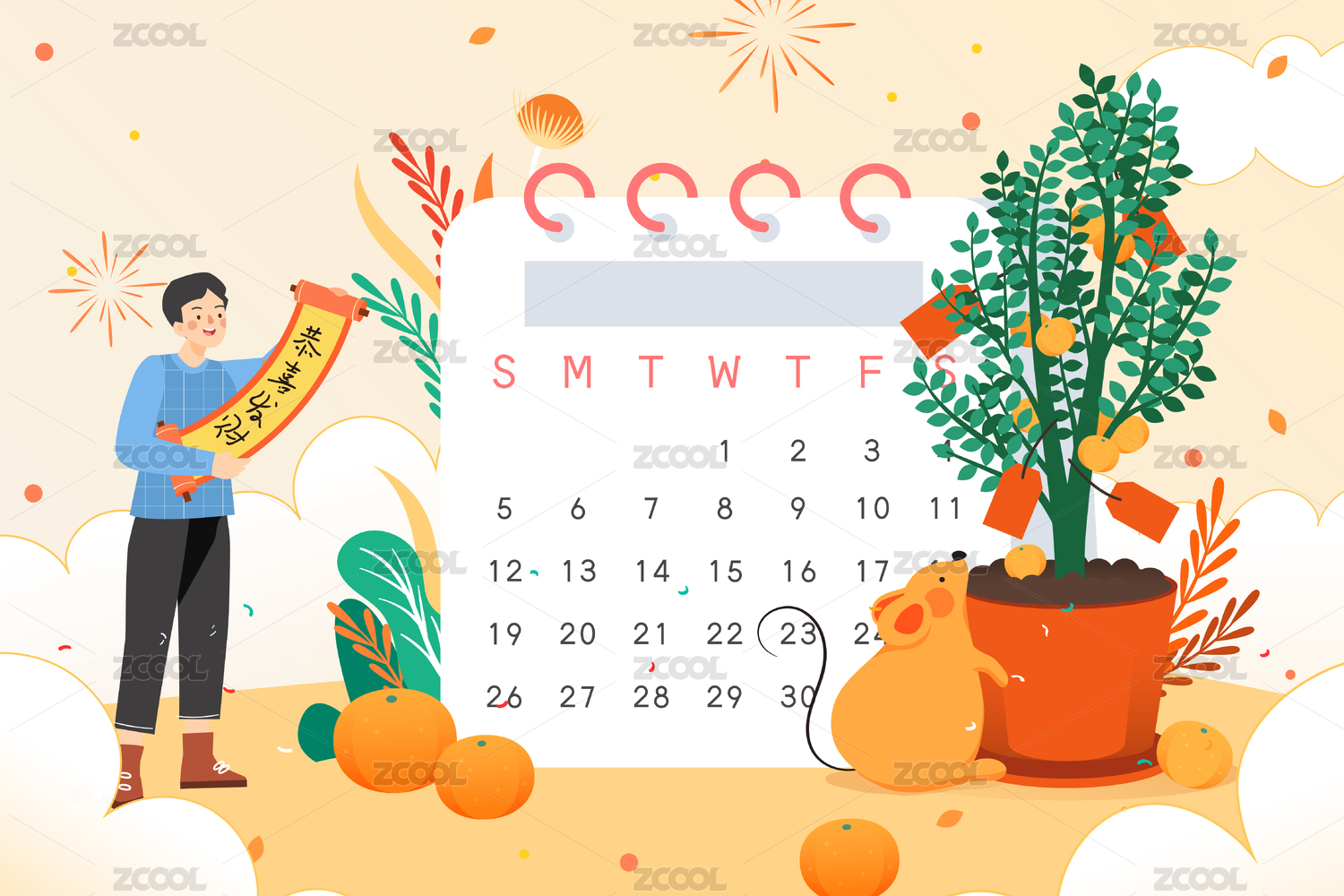 卡通2020鼠年元旦日历新年快乐背景矢量插画