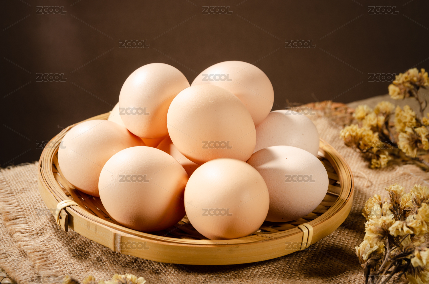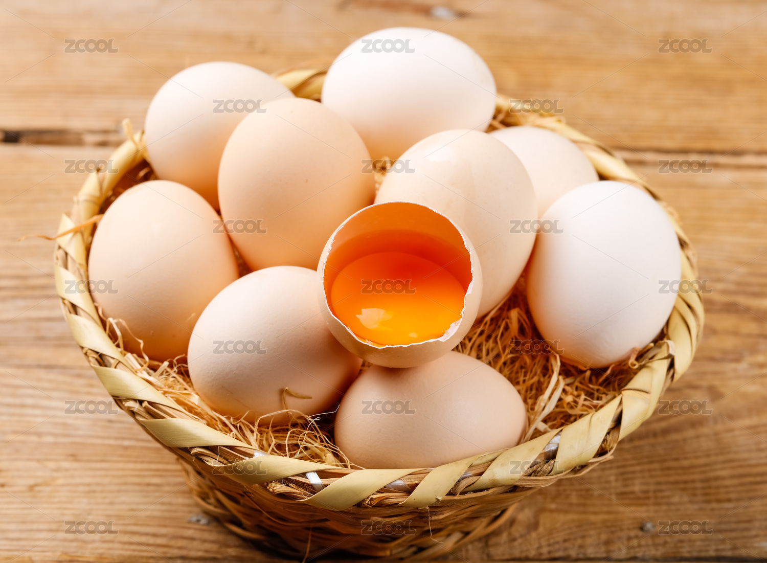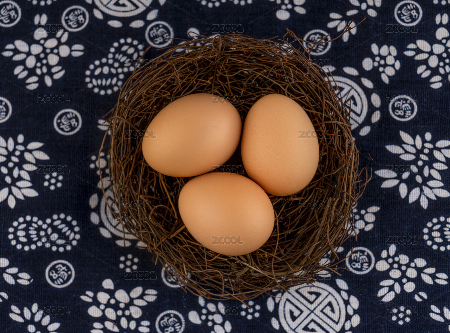 白底上蓝子里的散养土鸡蛋