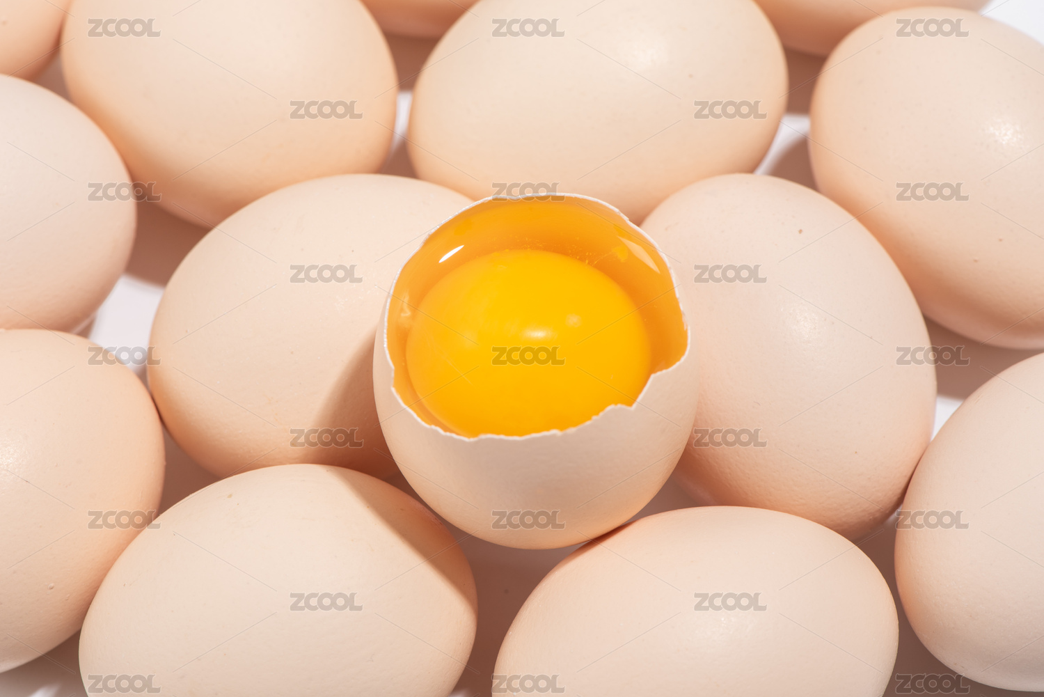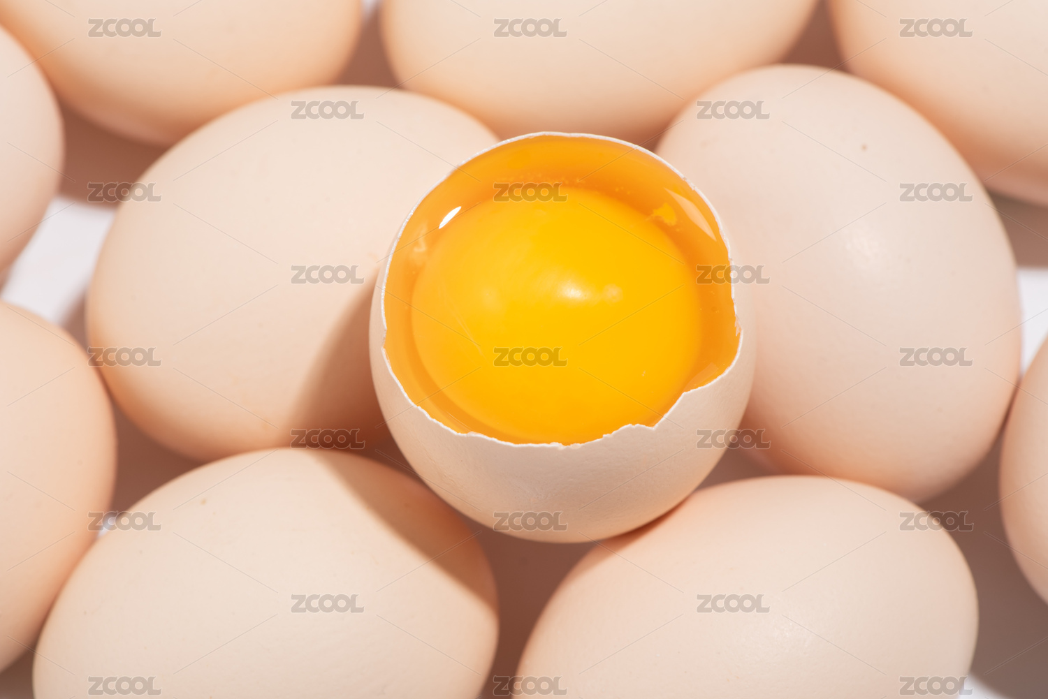 破壳的新鲜土鸡蛋特写