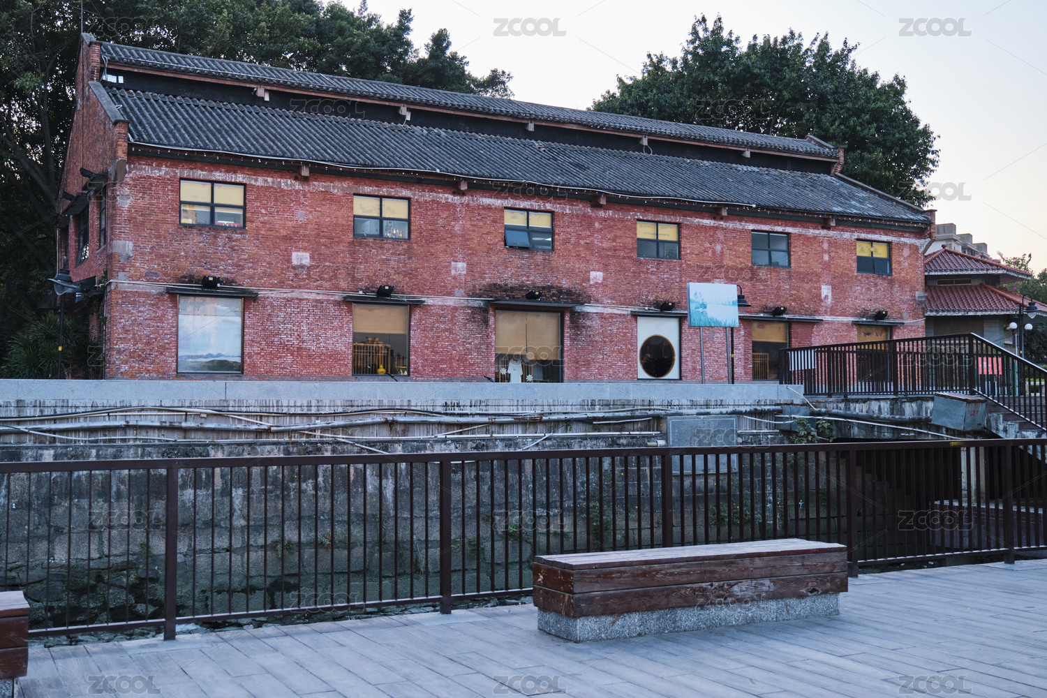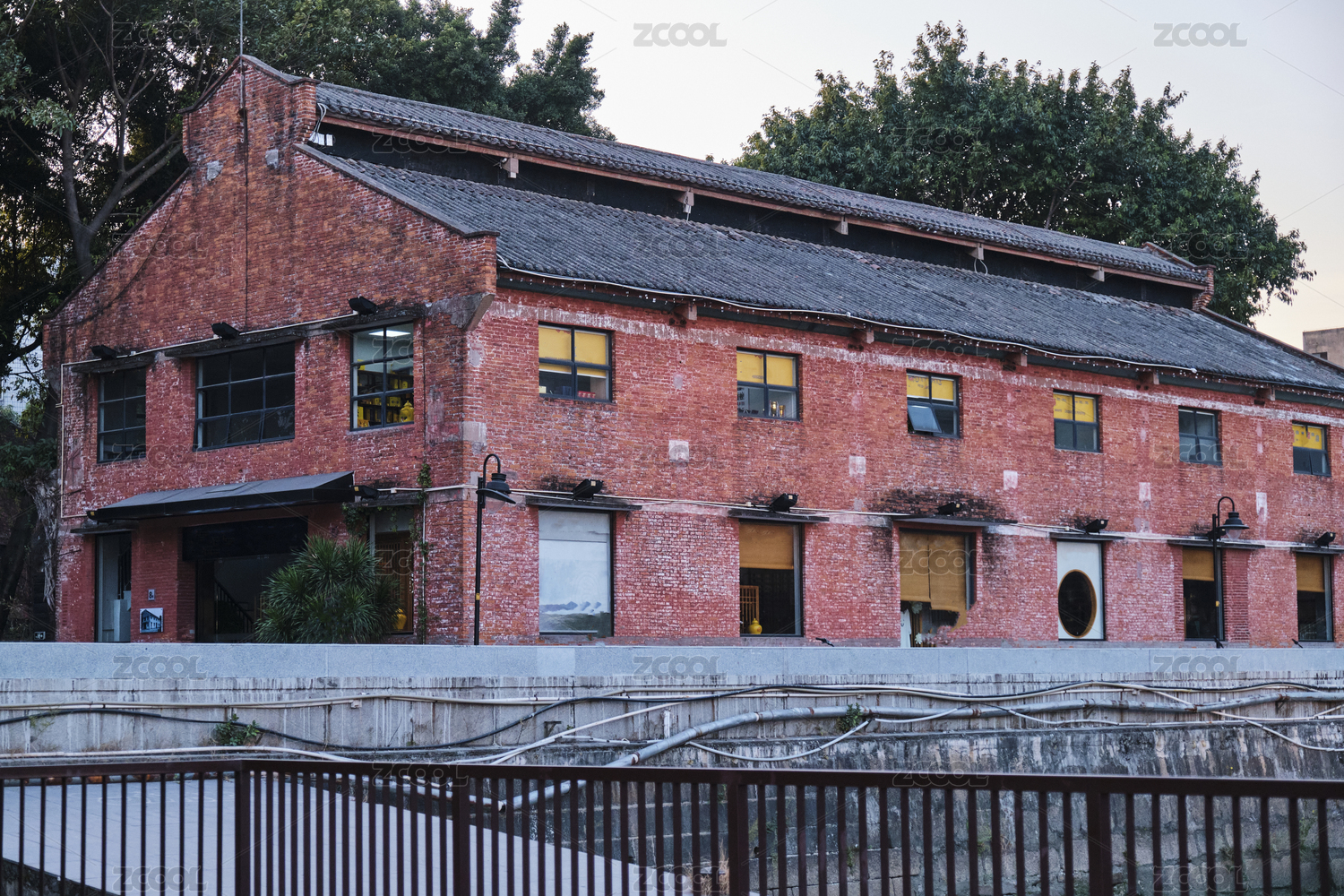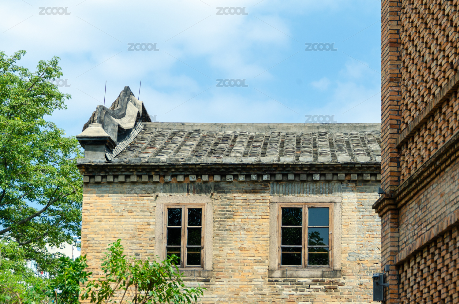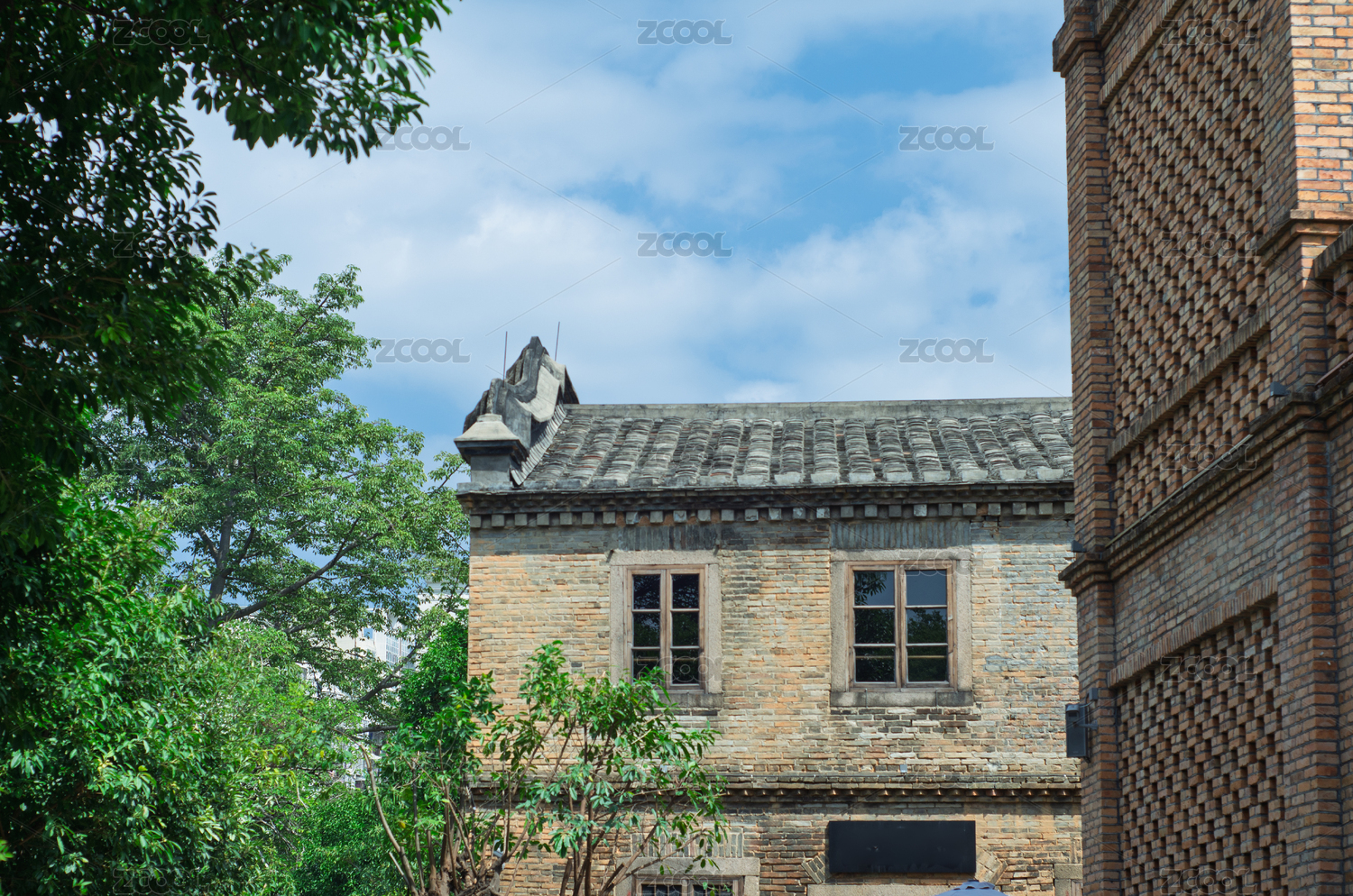 中国广州珠江岸红砖瓦房老建筑