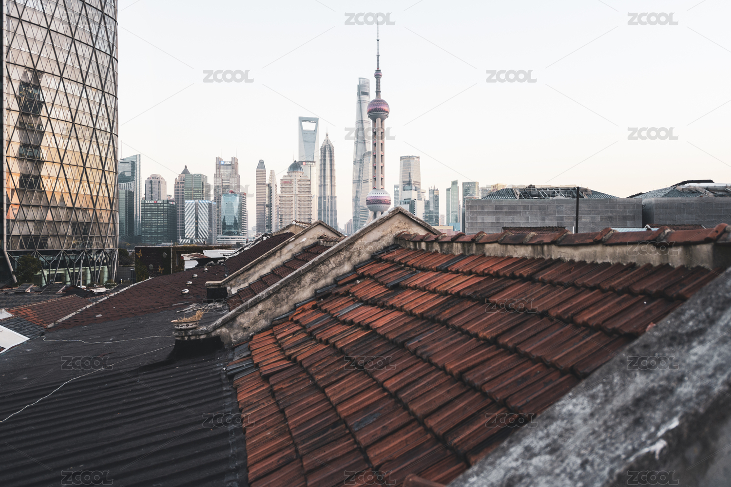 上海虹口区棚户区拆迁老建筑红色砖瓦房顶